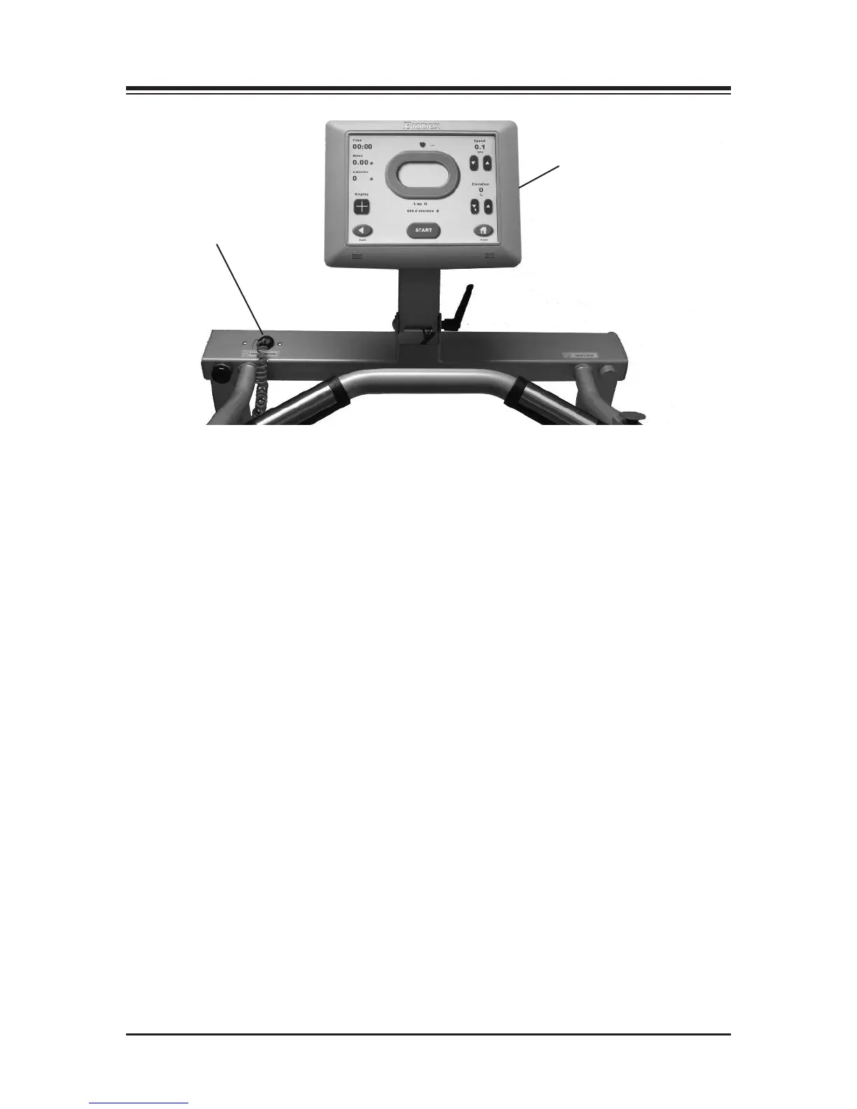 Stop (atop the right side of the Support Bar) at any time will cause the treadbelt to immediately ramp down