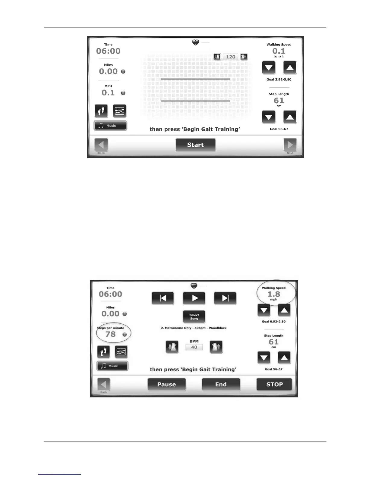 per minute or BPM) from the music library to optimize the patient's gait pattern.