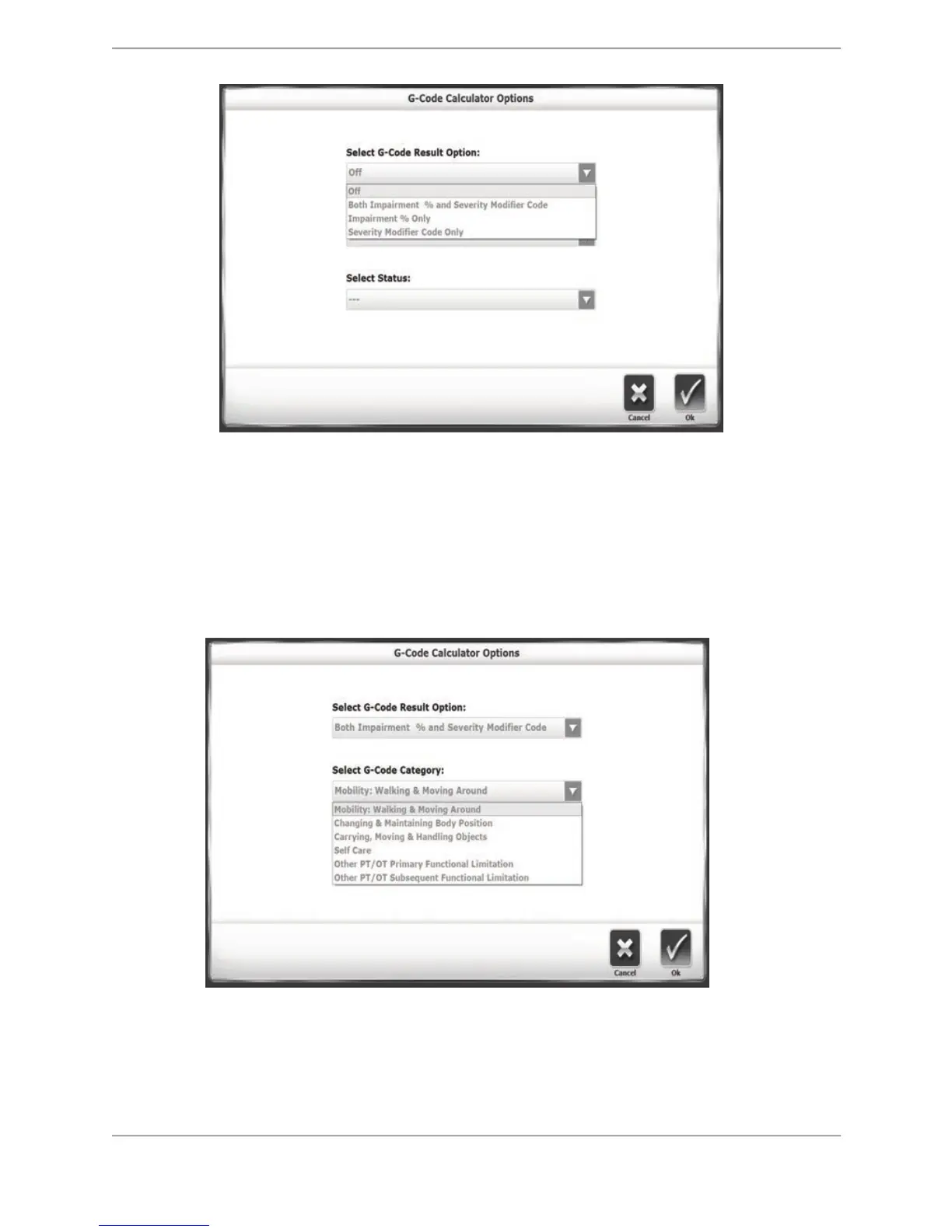 5. The G-Code category drop-down menu features a list of commonly used rehabilitation