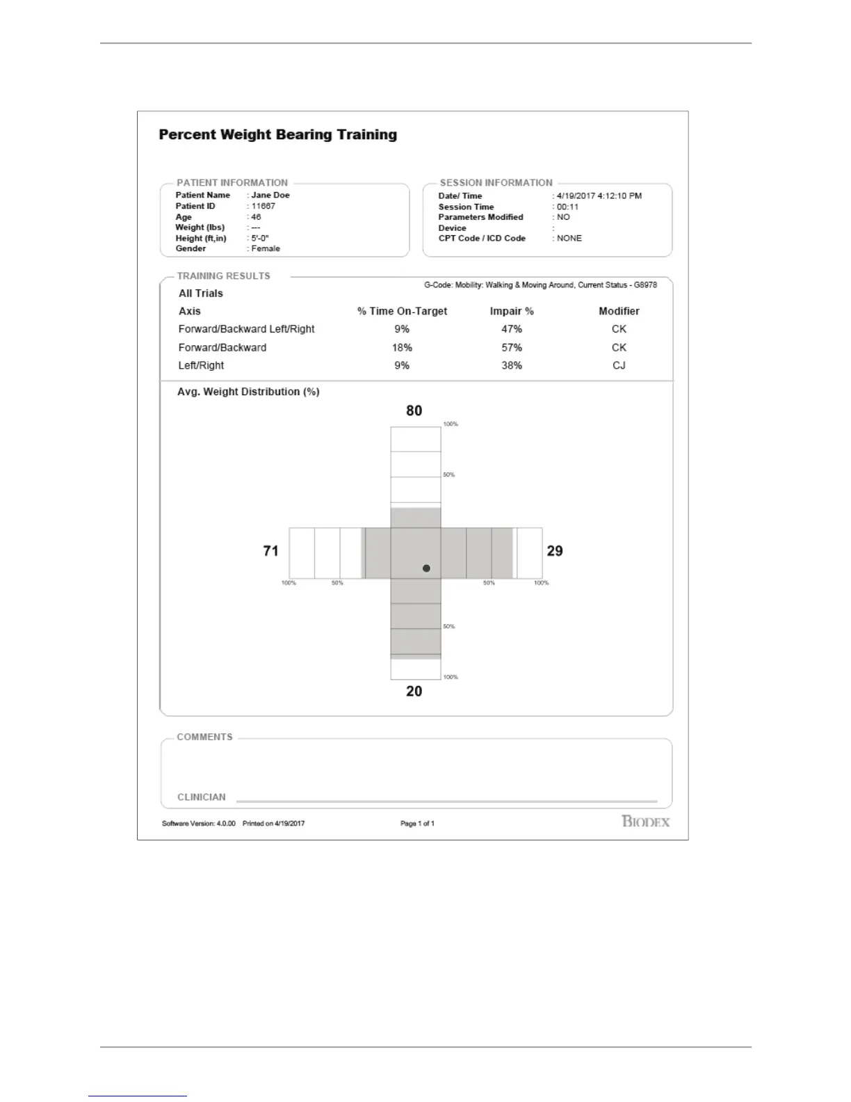 biodex 950-440 - Sample Reports with G-Code - Percent Weight Bearing Training