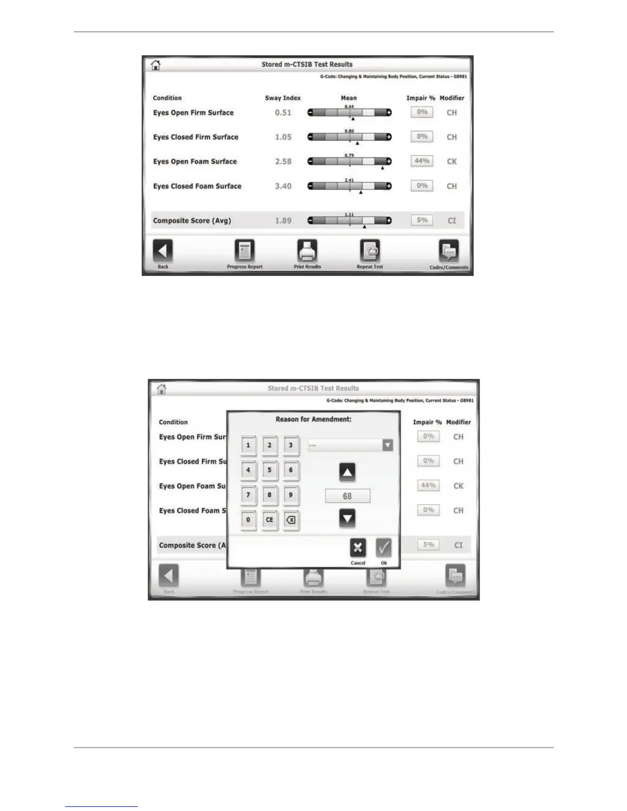 Figure 10.10. The Stored Test Results screen. The Impairment Percentages can be adjusted by clicking on the