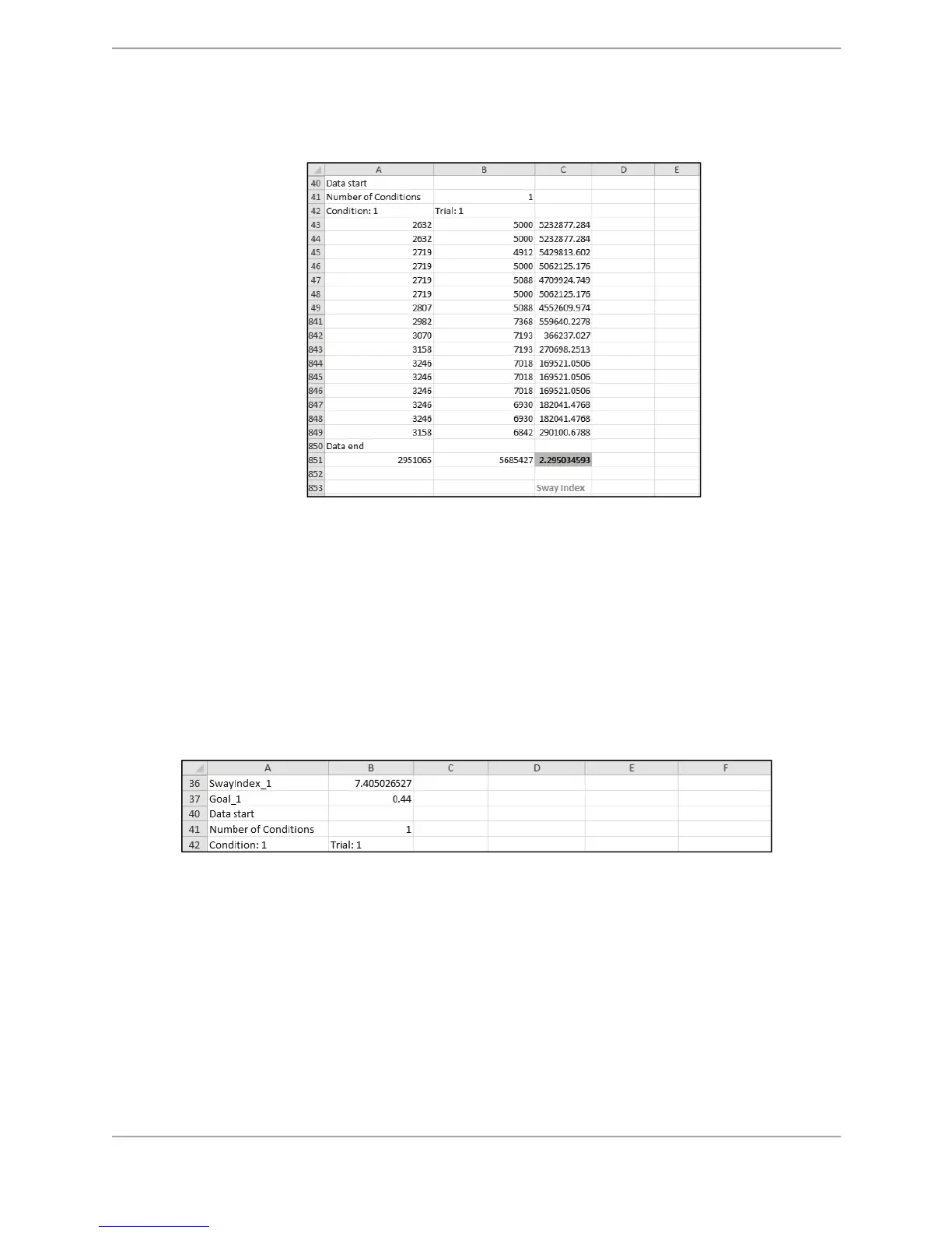 trials. For multiple trials, the data will be displayed as Condition 1, Trial 1, Condition 2 Trial 2,
