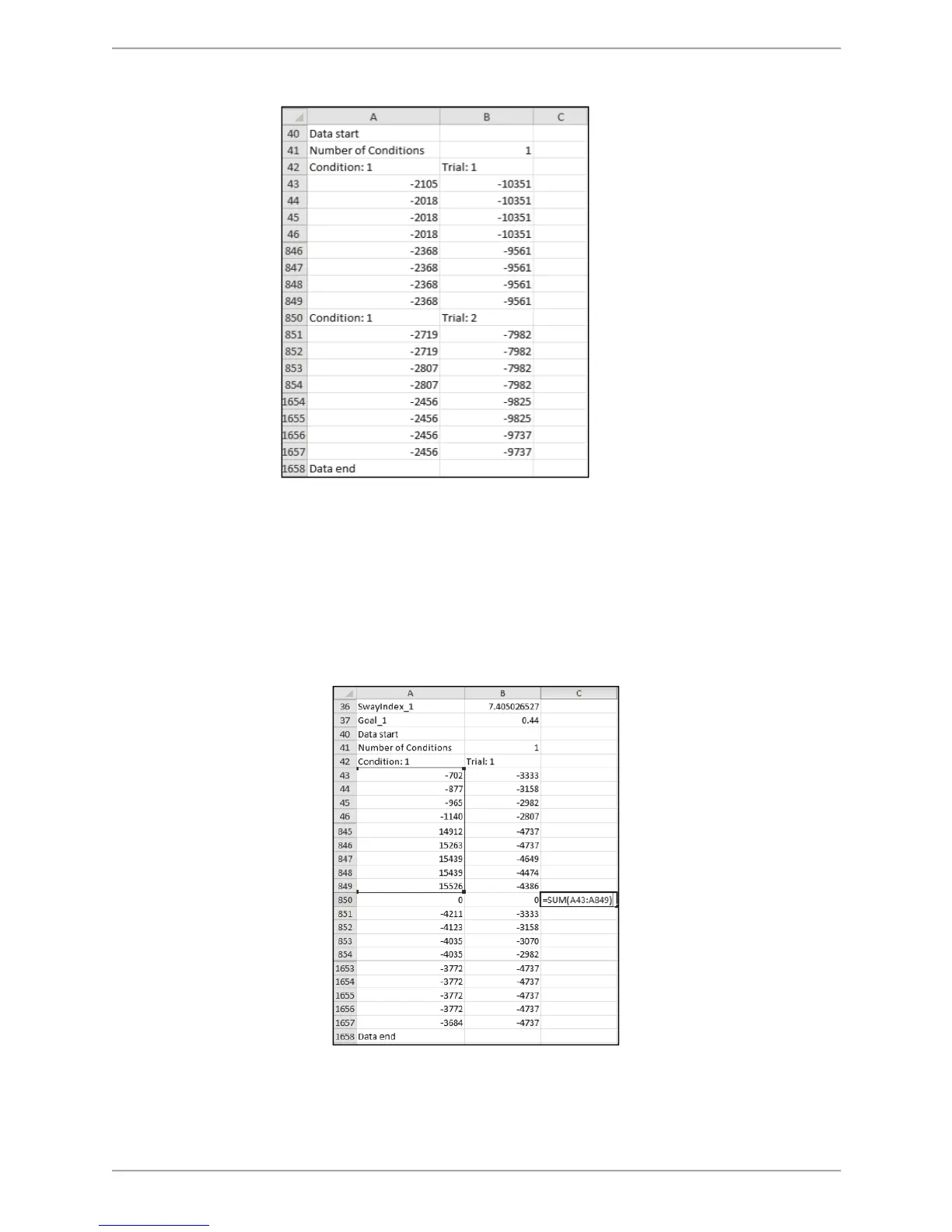 1. Remove the text in between the data points (e.g., Condition 1 Trail 2) to avoid any error