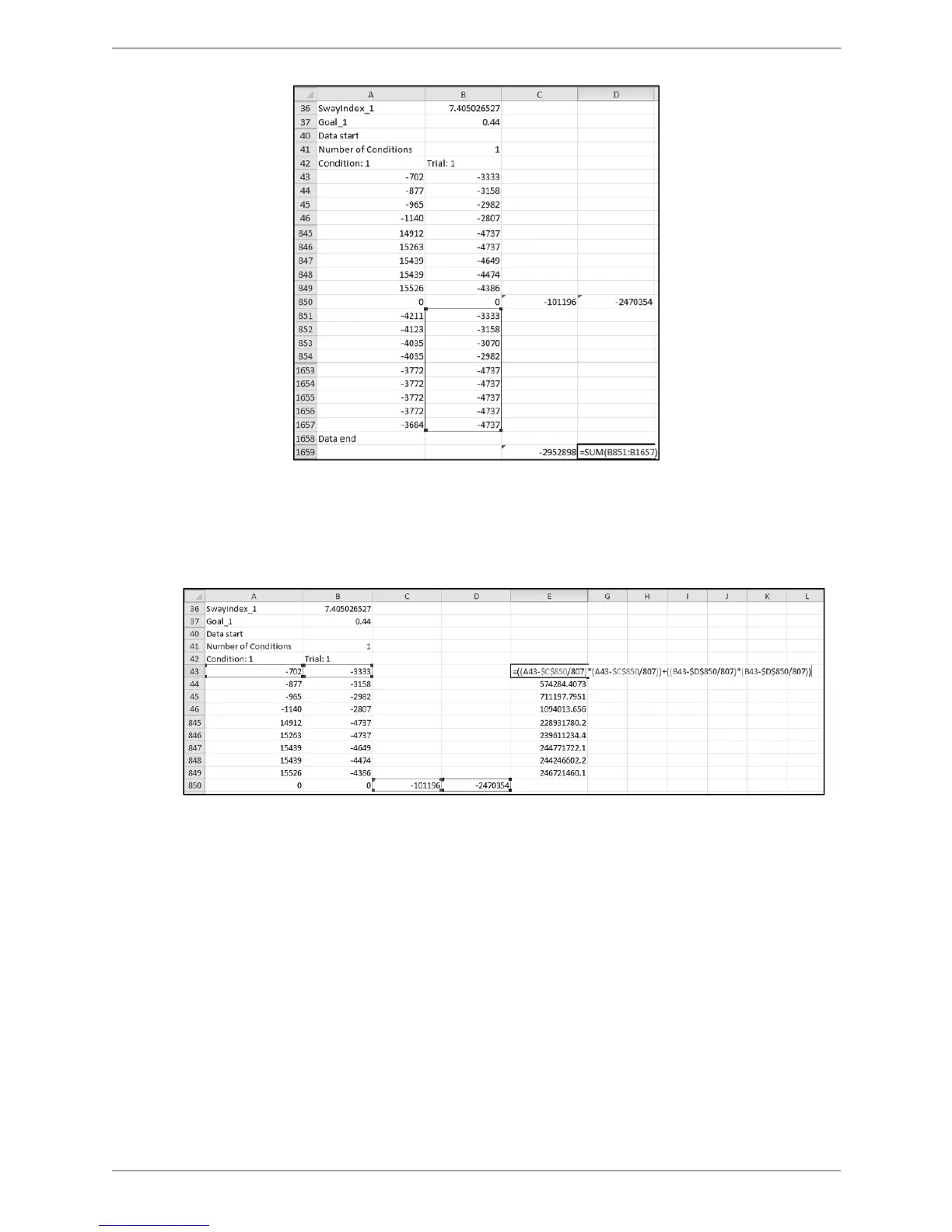 5. Repeat step 4 to determine the Sway Index value for each row from 851 to 1659: