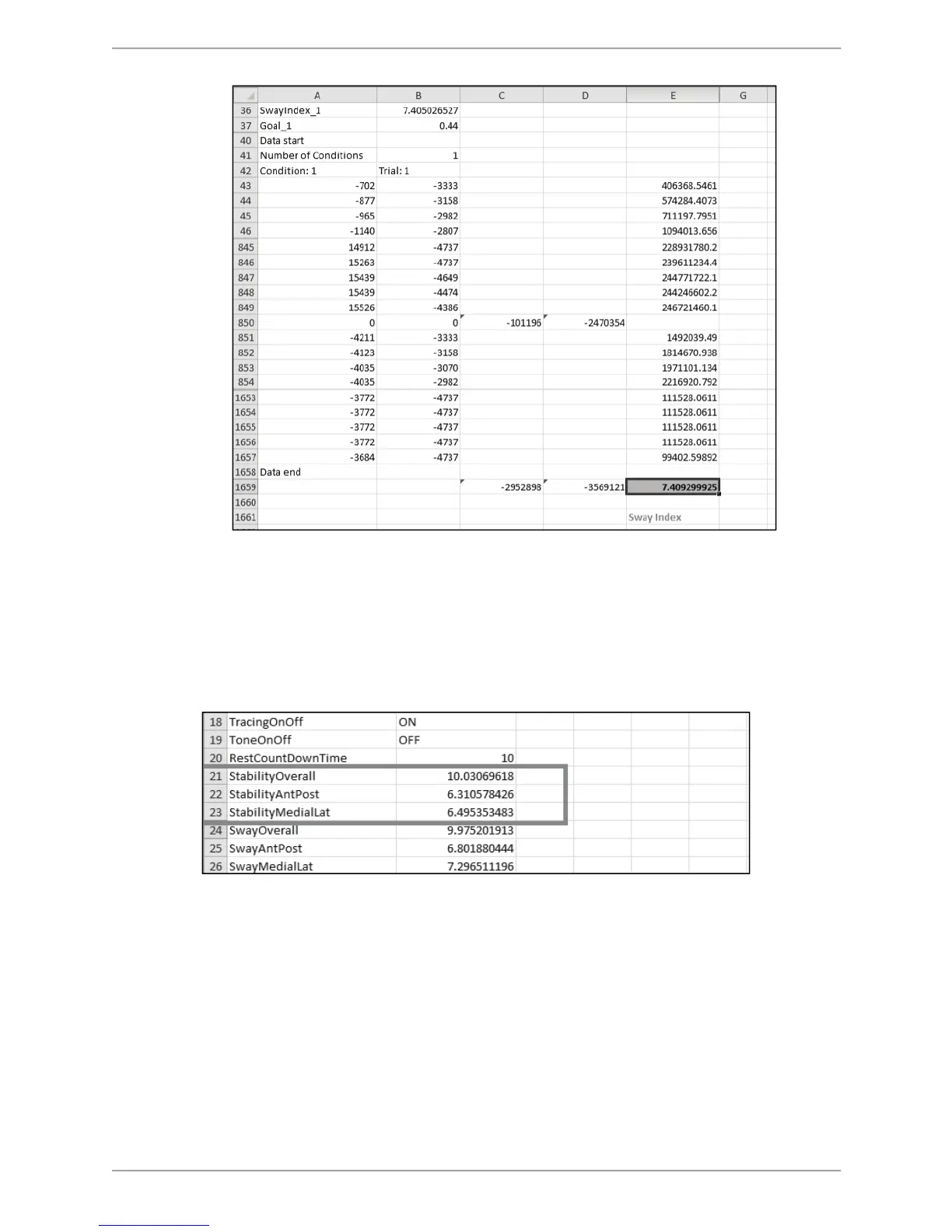 Calculation Using the Formula on the Excel Sheet – Postural Stability Test