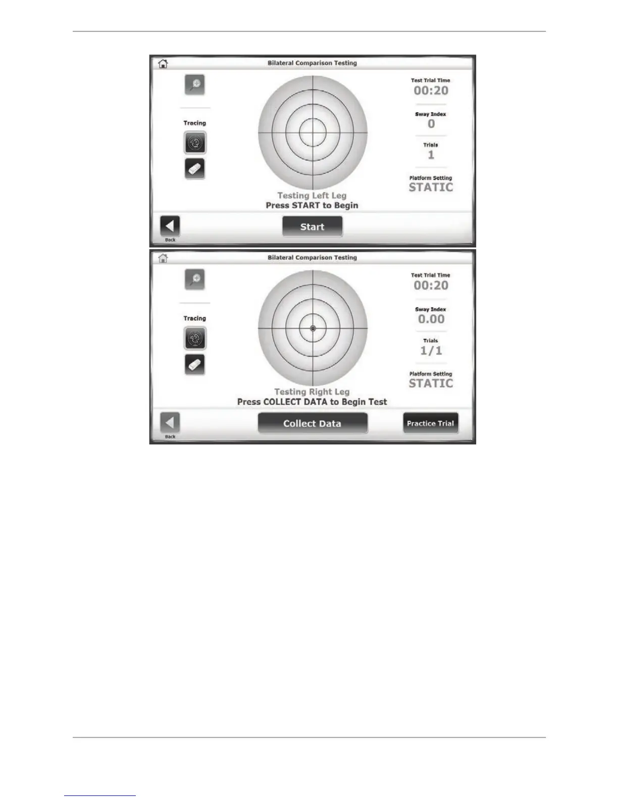 Figure 7.15. The Bilateral Comparison Testing screens--one for each leg.