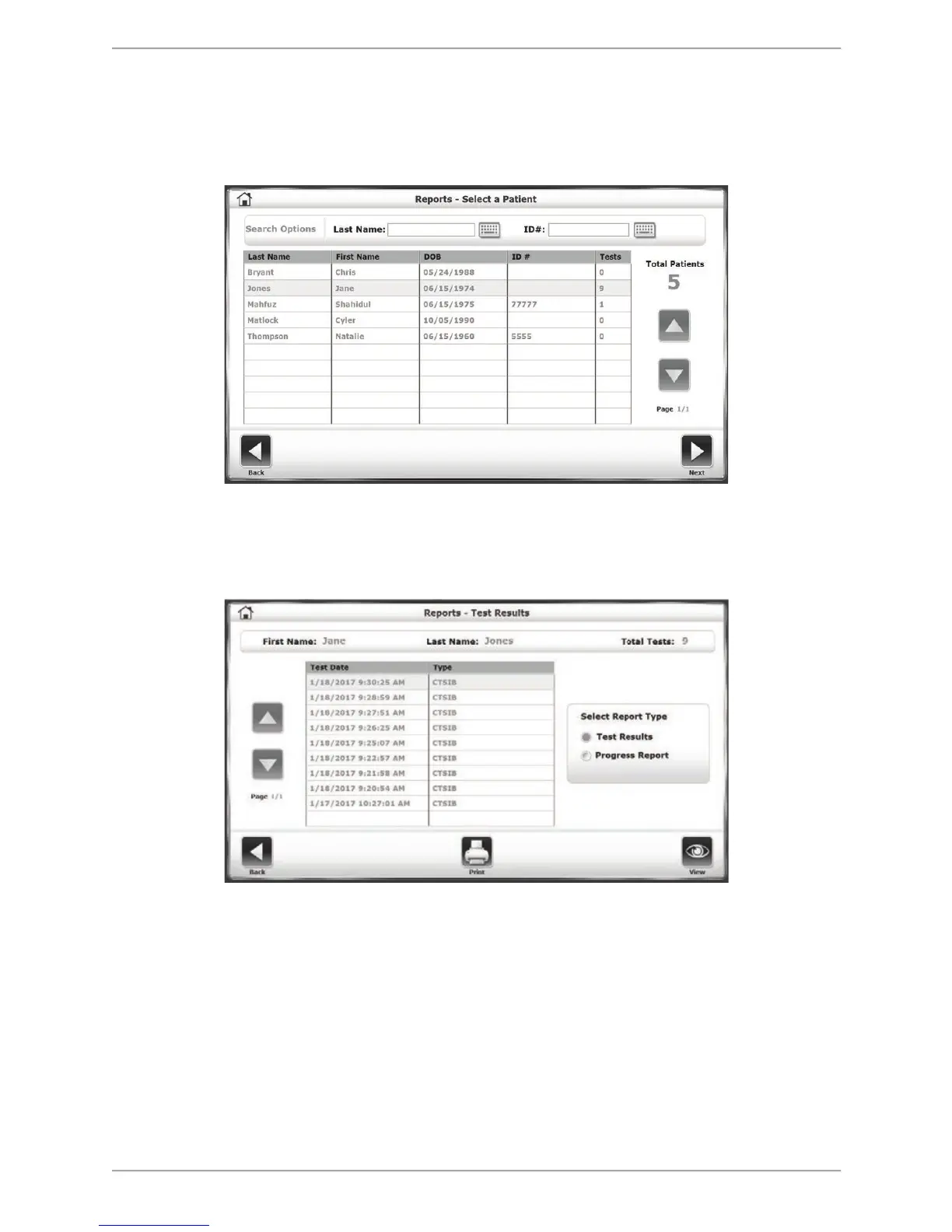 2. On the Reports – Test Results screen, the user can view individual test results, or, if there is