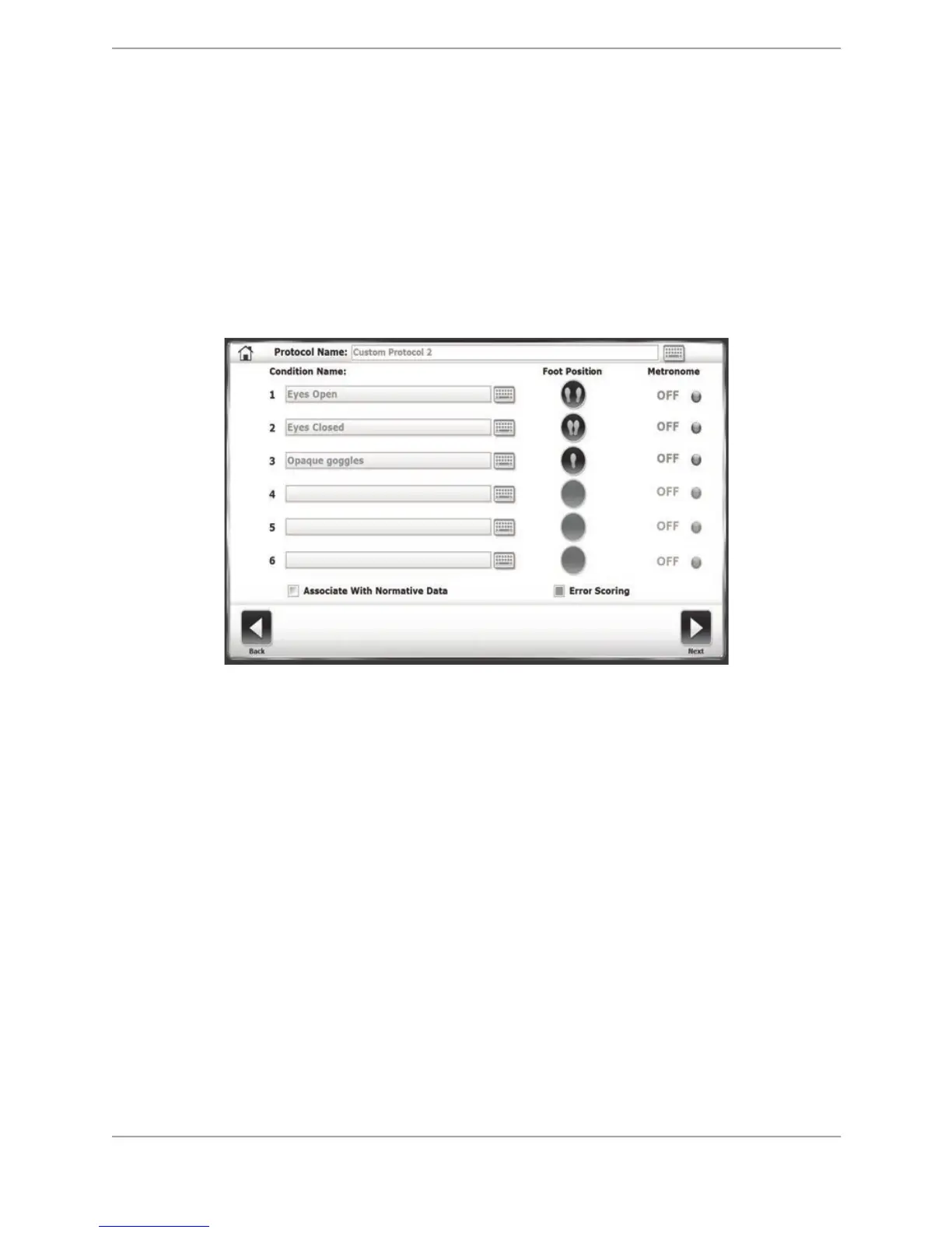 13. Touch the <Metronome> field to choose a metronome time if using a vestibular ocular