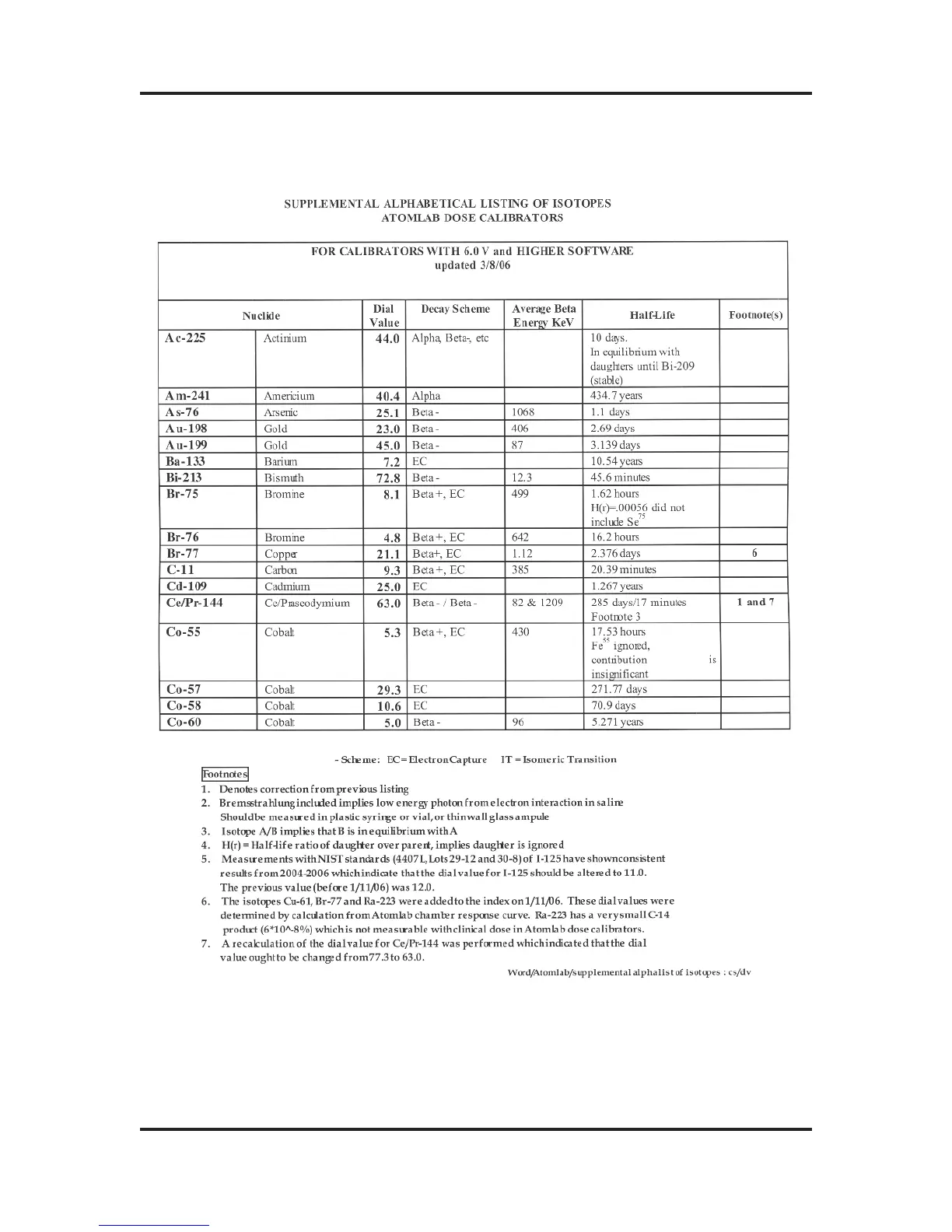 biodex ATOMLAB 100 - Supplemental Isotope Listing (Part 1)