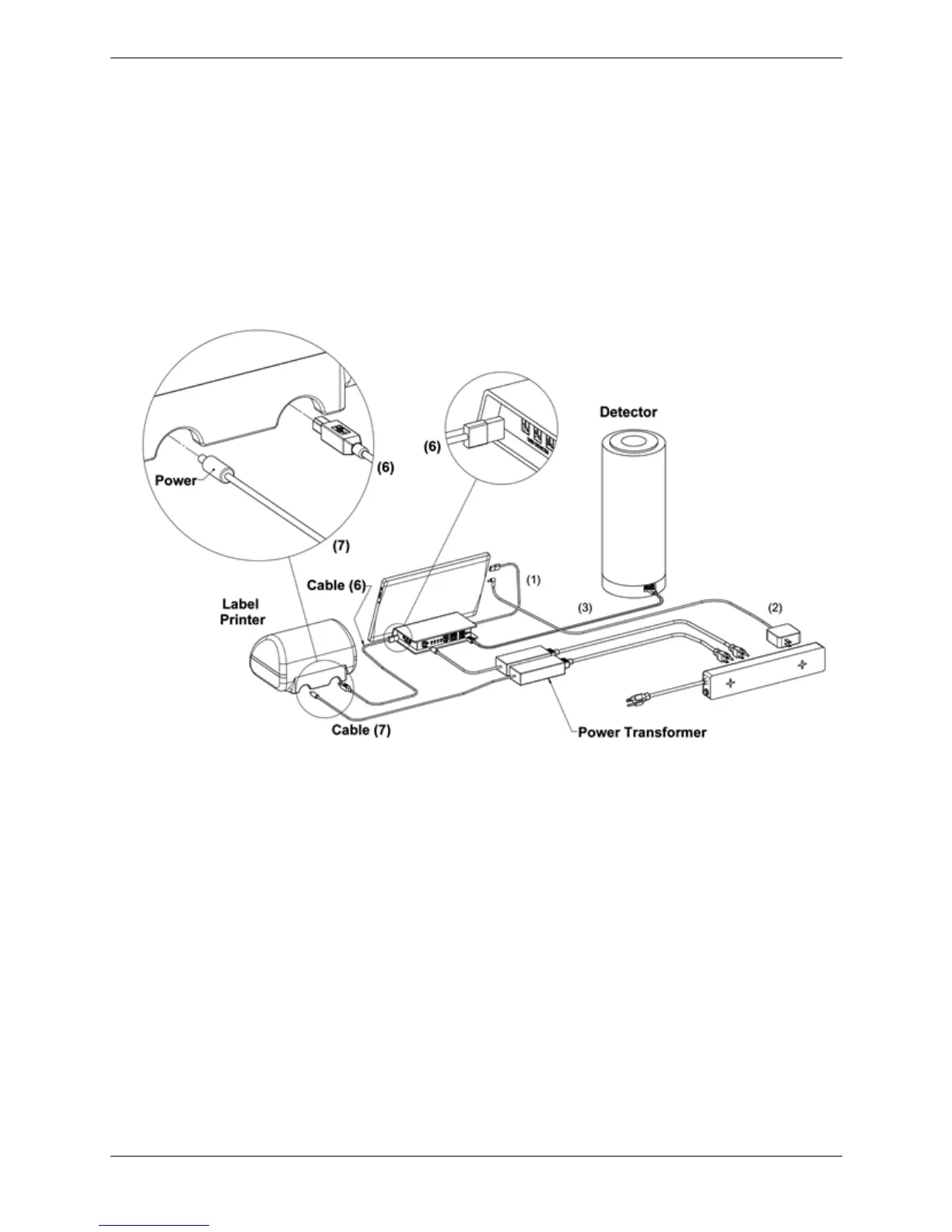 the power connector end of Cable 7 into the Label Printer as illustrated in the circular inset