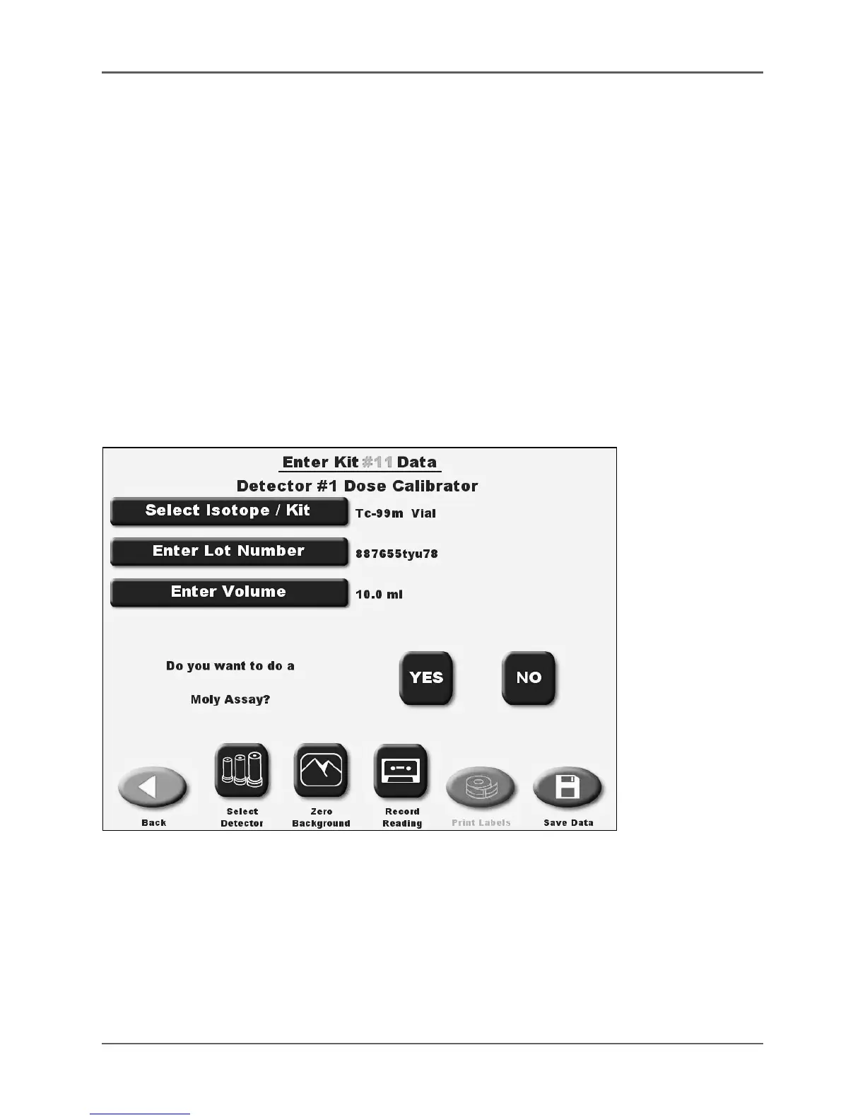 Figure 5.28. The Enter Kit # Data screen for Tc-99m.
