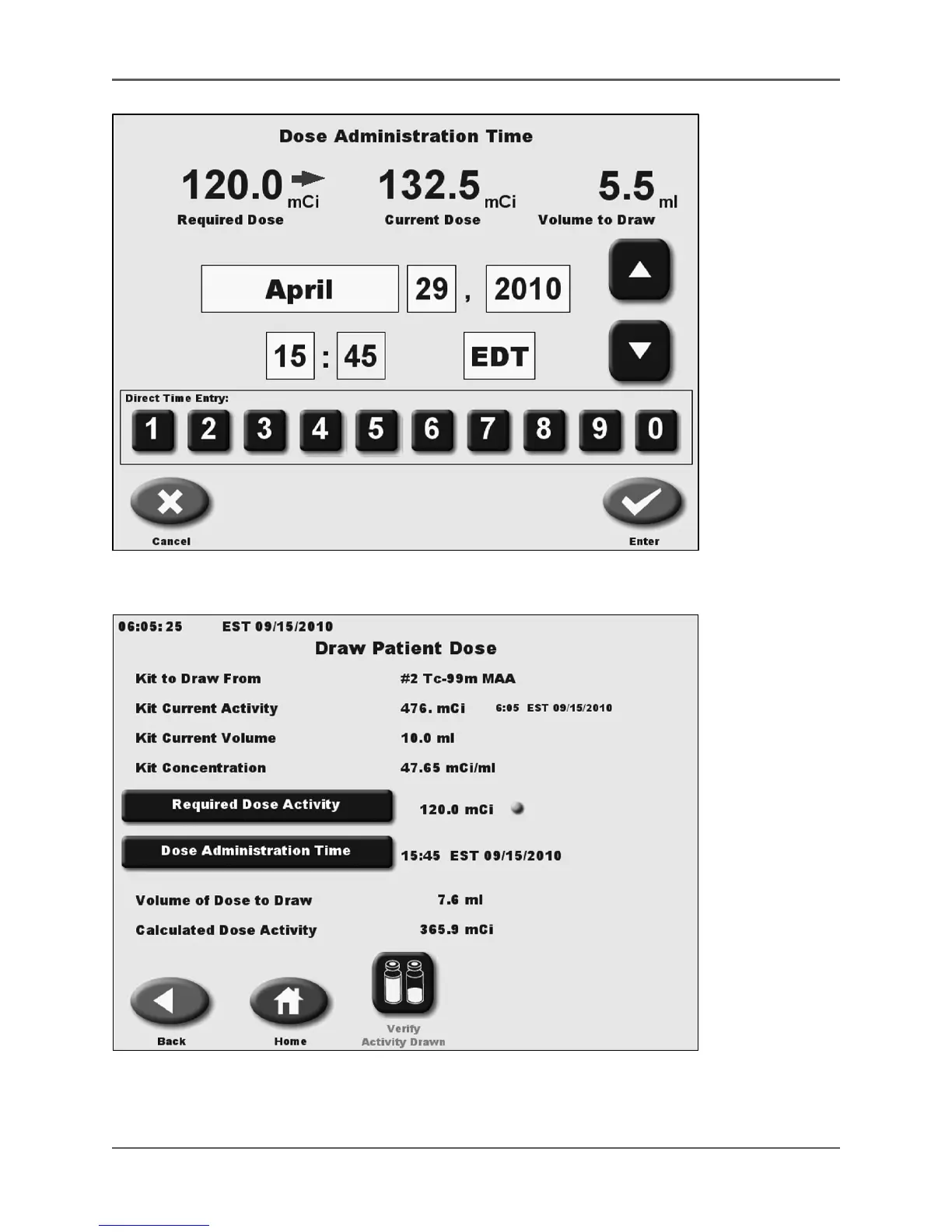 Figure 5.38. The Draw Patient Dose screen with information displayed.