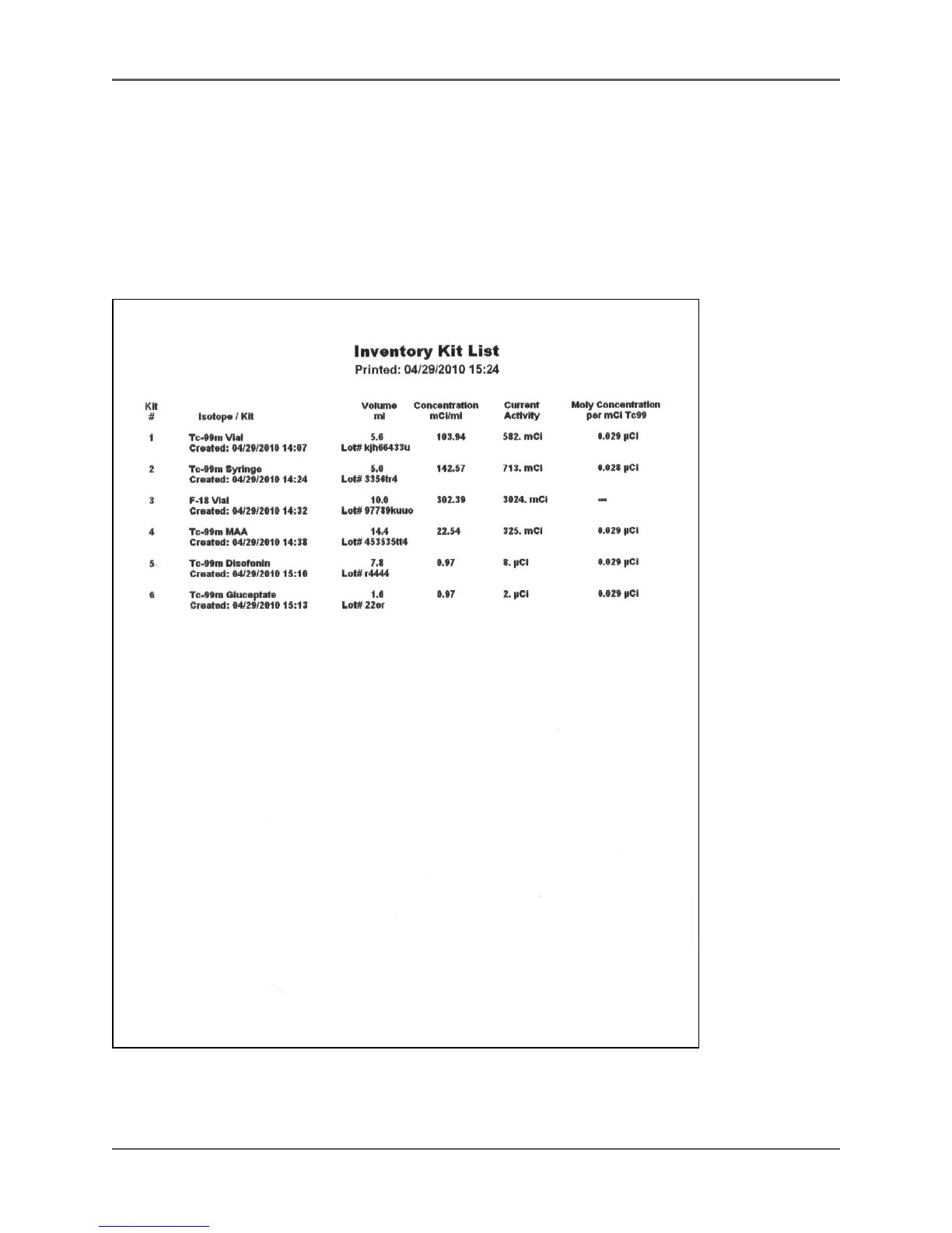 Figure 5.43. The Inventory Kit List printout.