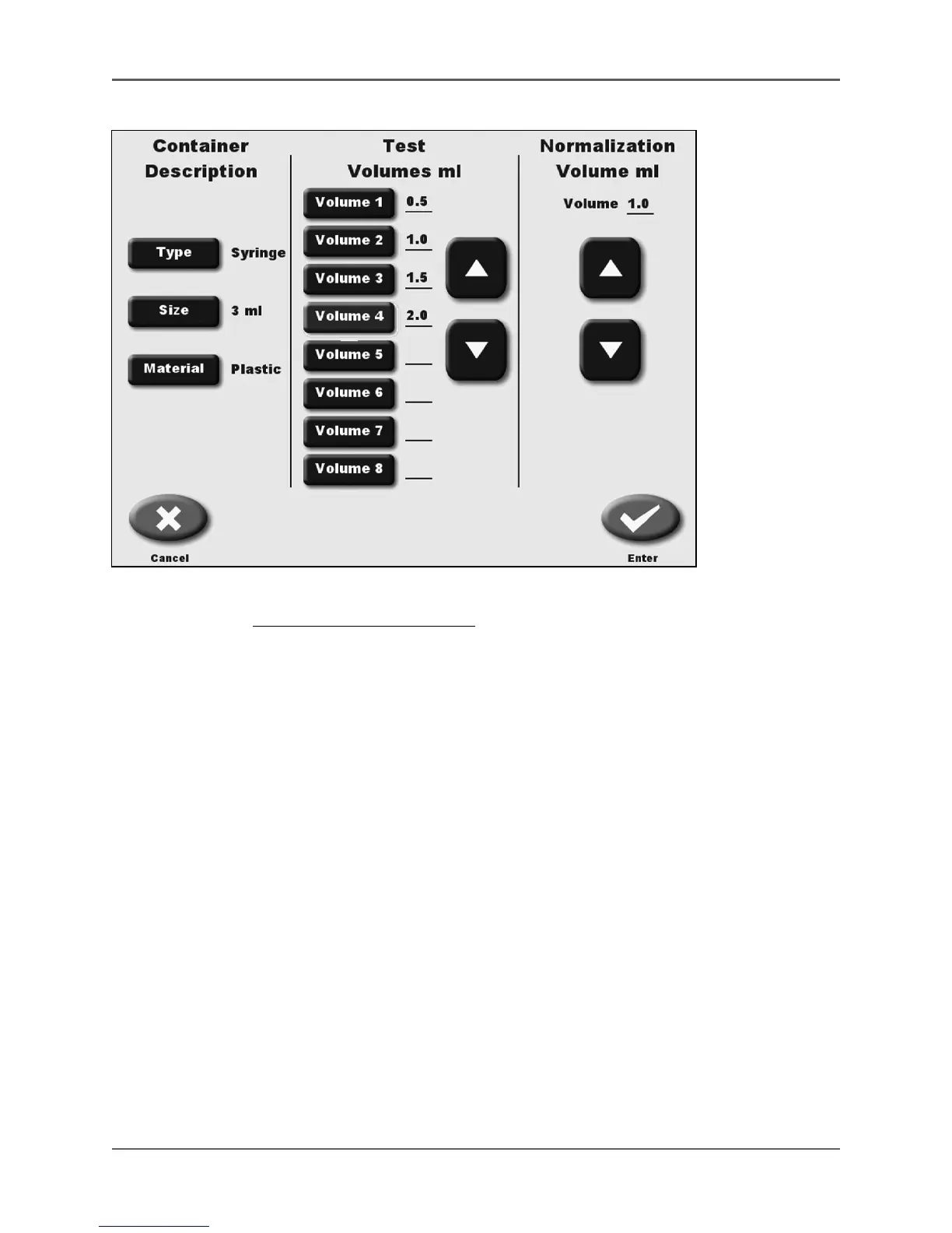 and <▼> arrows to adjust the value. Continue entering the volumes until you reach the