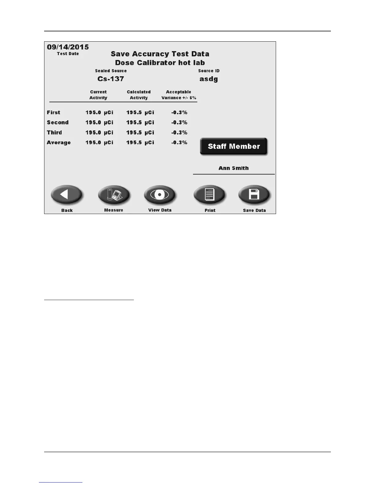 Figure 6.11. The Save Accuracy Test data screen.