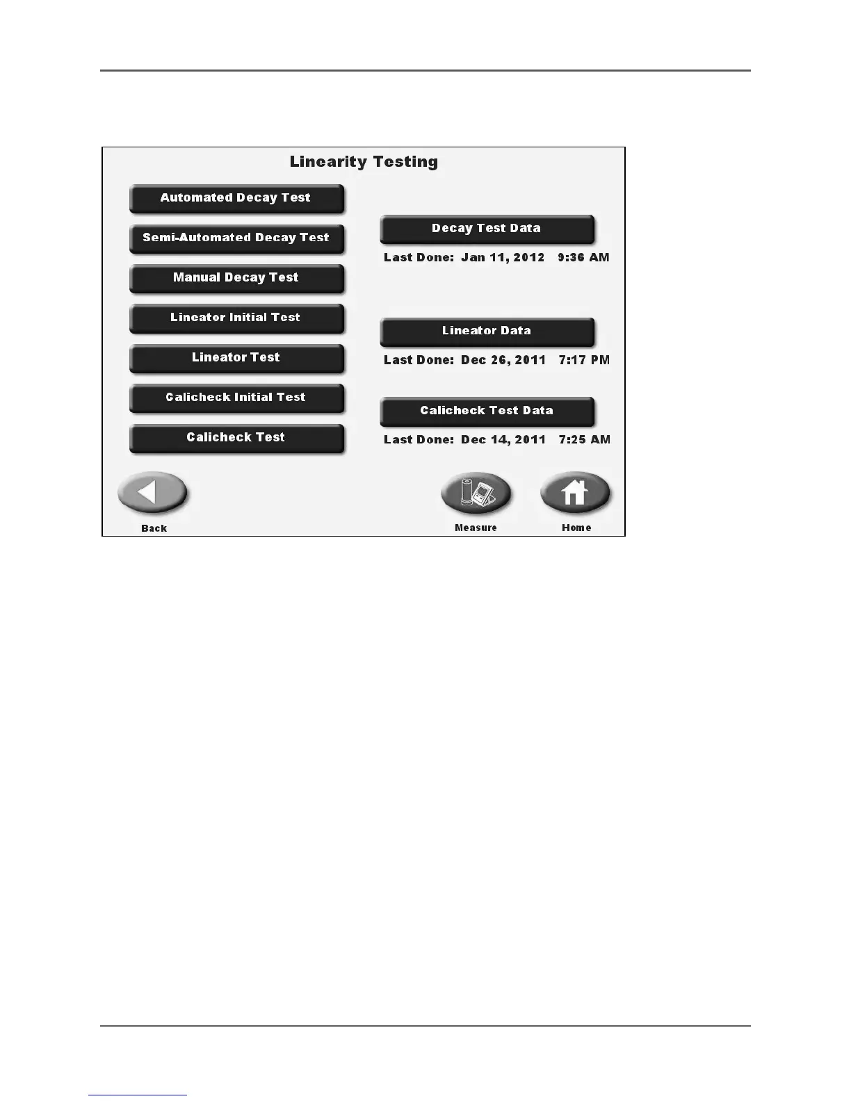 Figure 6.22. The Linearity Testing screen.