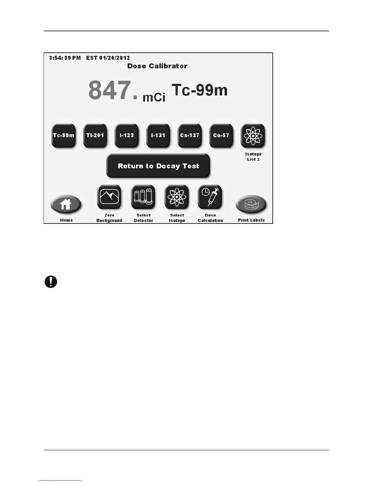 calibrator. Touch <Return to Decay Test> on the Measure screen to return to the automated