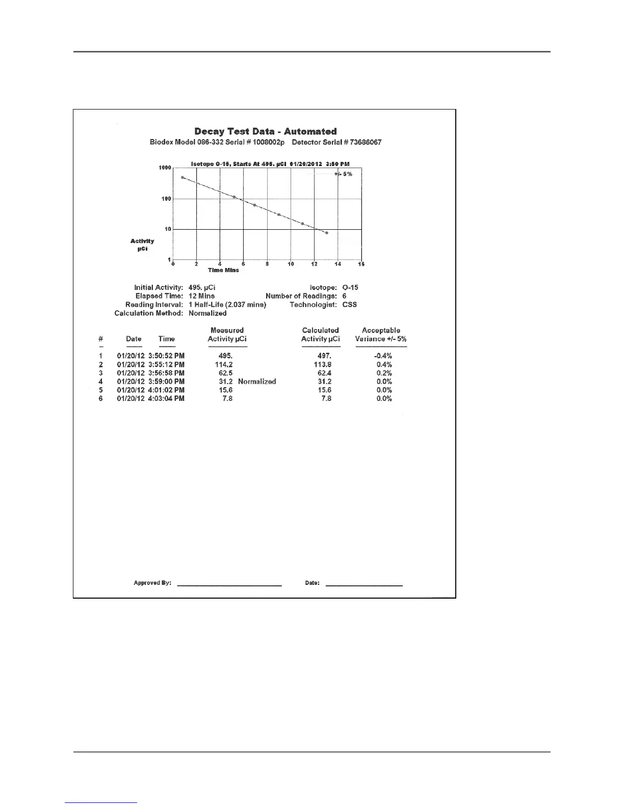 Figure 6.31. An Automated Decay Test Data Report.