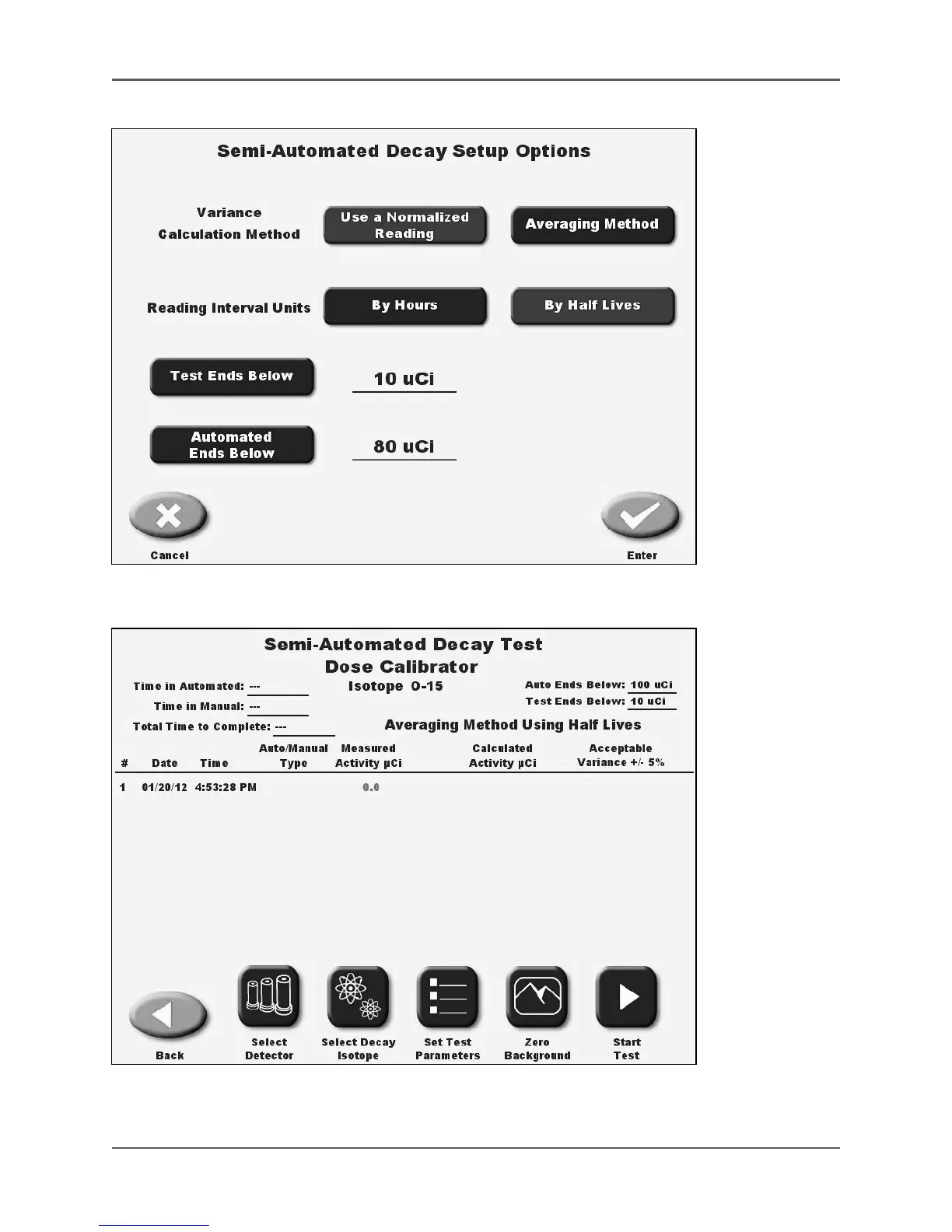 Figure 6.35. The Semi-Automated Decay Test screen using averaging method.