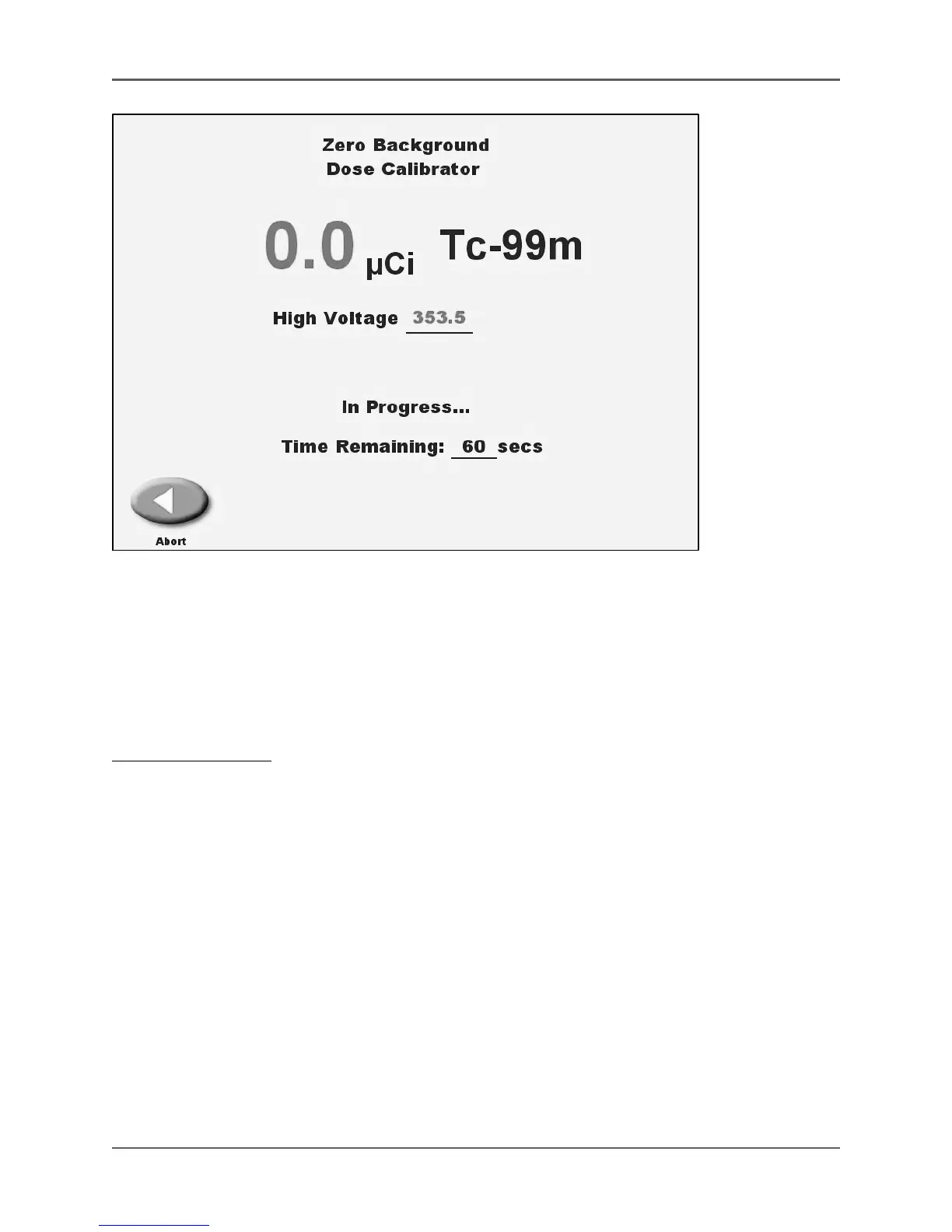 3. Touch the <Zero Background> prompt. The message “in progress… time remaining XXX