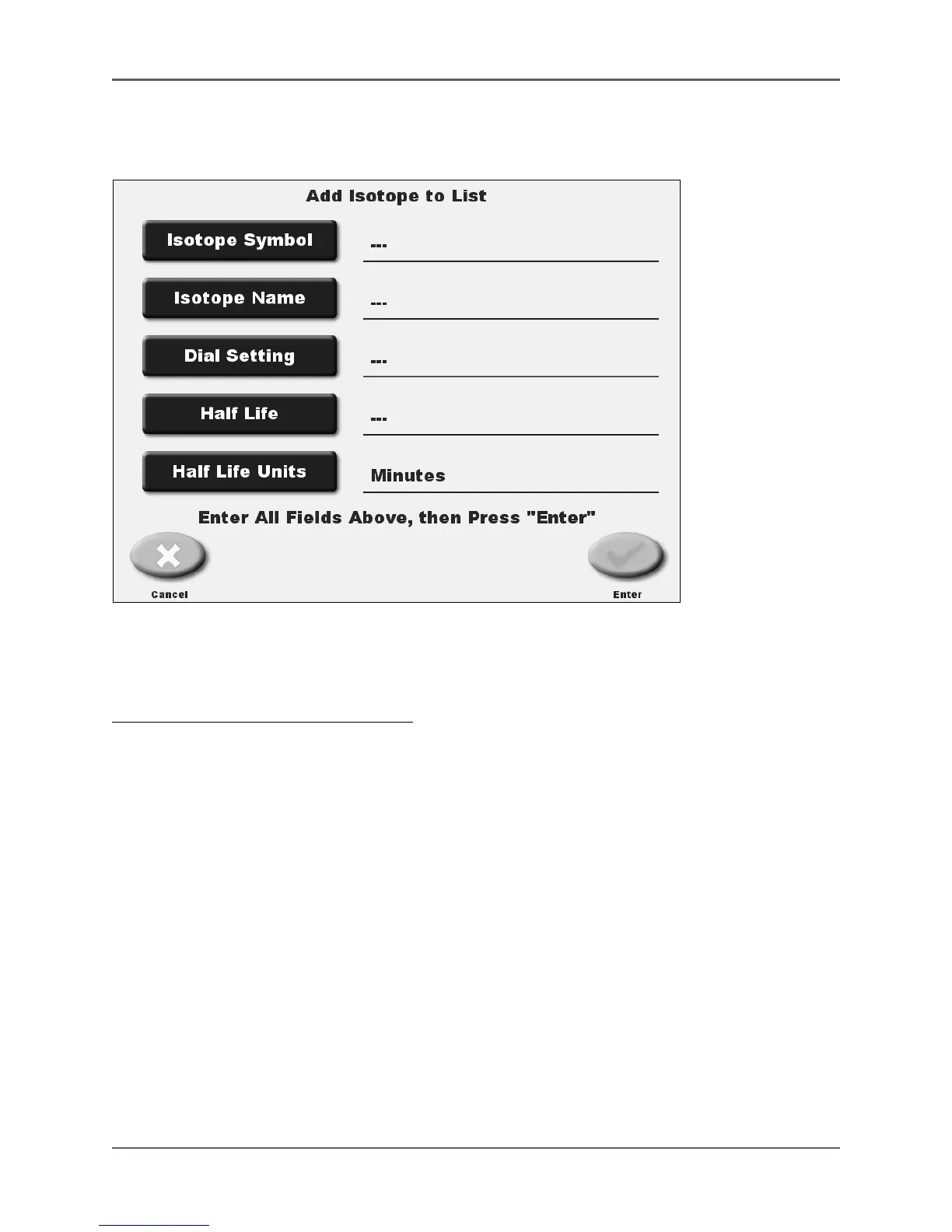4. Touch <Enter> to add the new isotope to the Isotope List, or <Cancel> to return to the