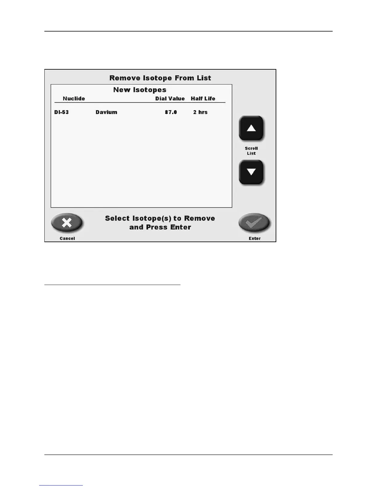 Figure 4.16. The Remove Isotope From List screen.