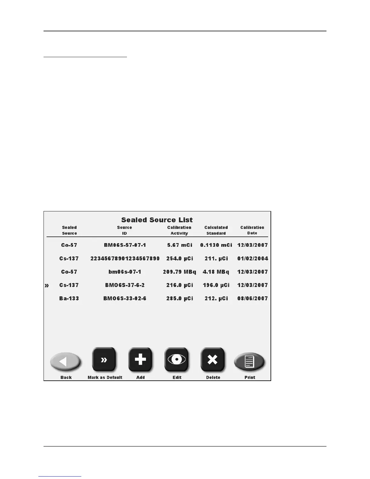 Figure 4.19. The Sealed Source List. Note that Cs-137 is marked as the default (>>) in this example.