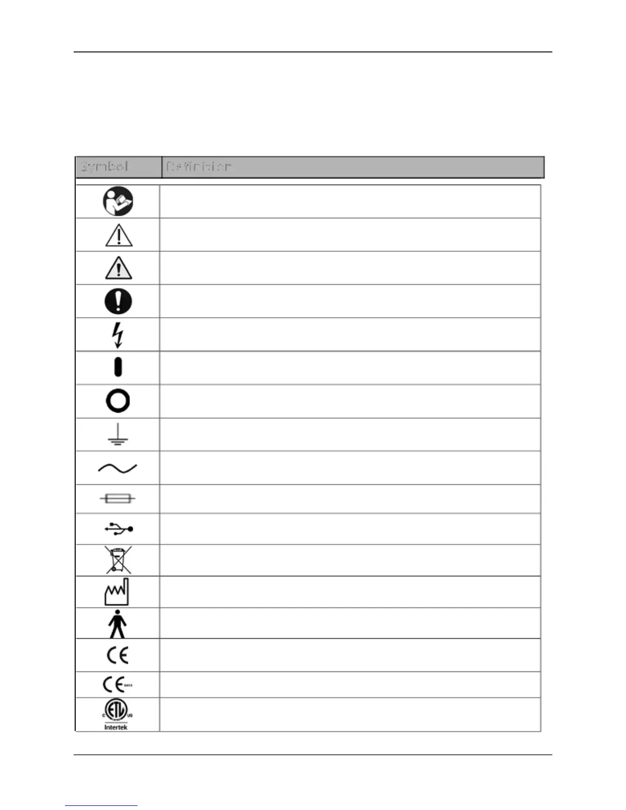 The following symbols and their associated definitions are used and