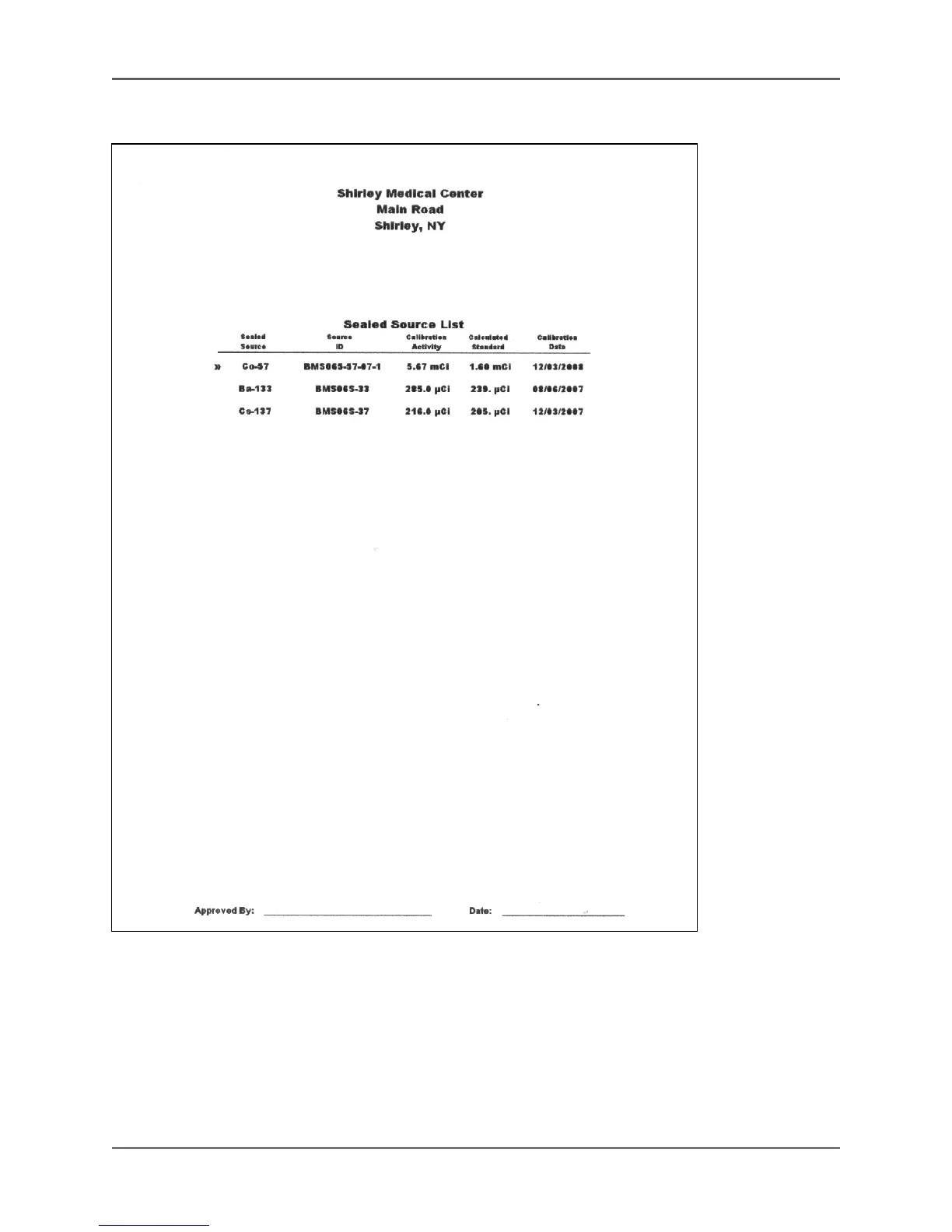 Figure 4.21. A Sealed Source List print out.