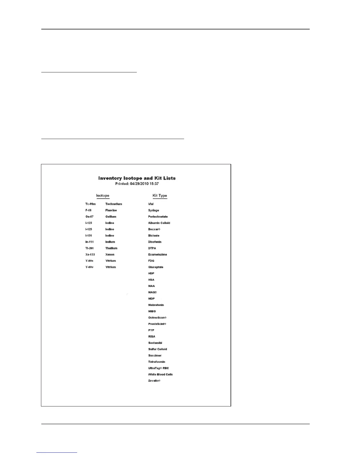 1. To print the Setup Inventory Isotopes and Kits list at any time, touch <Print List>. The