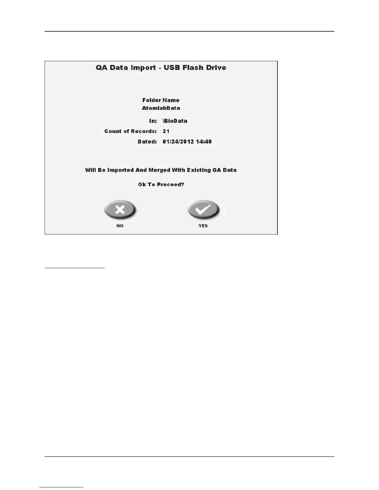 Figure 4-33. The QA Data Import Okay to Proceed screen.
