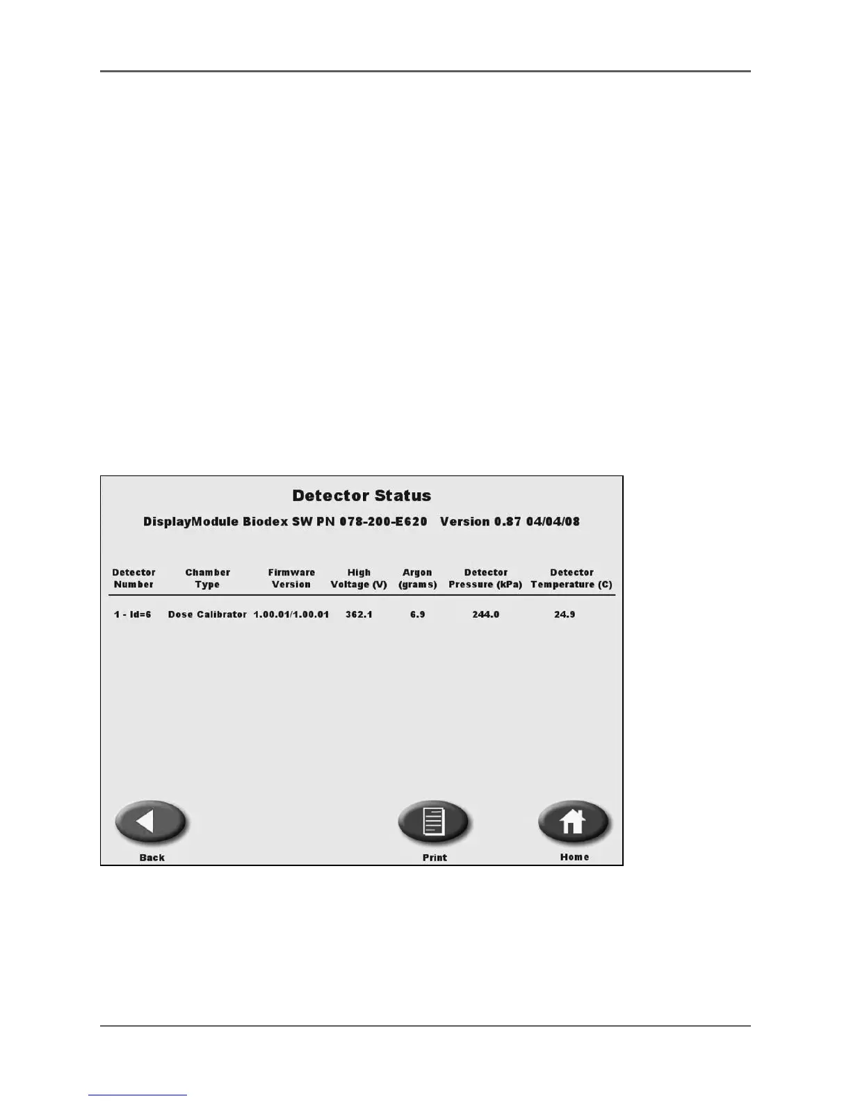 versions on the detector pc board, the high voltage reading (V) and on dose calibrator