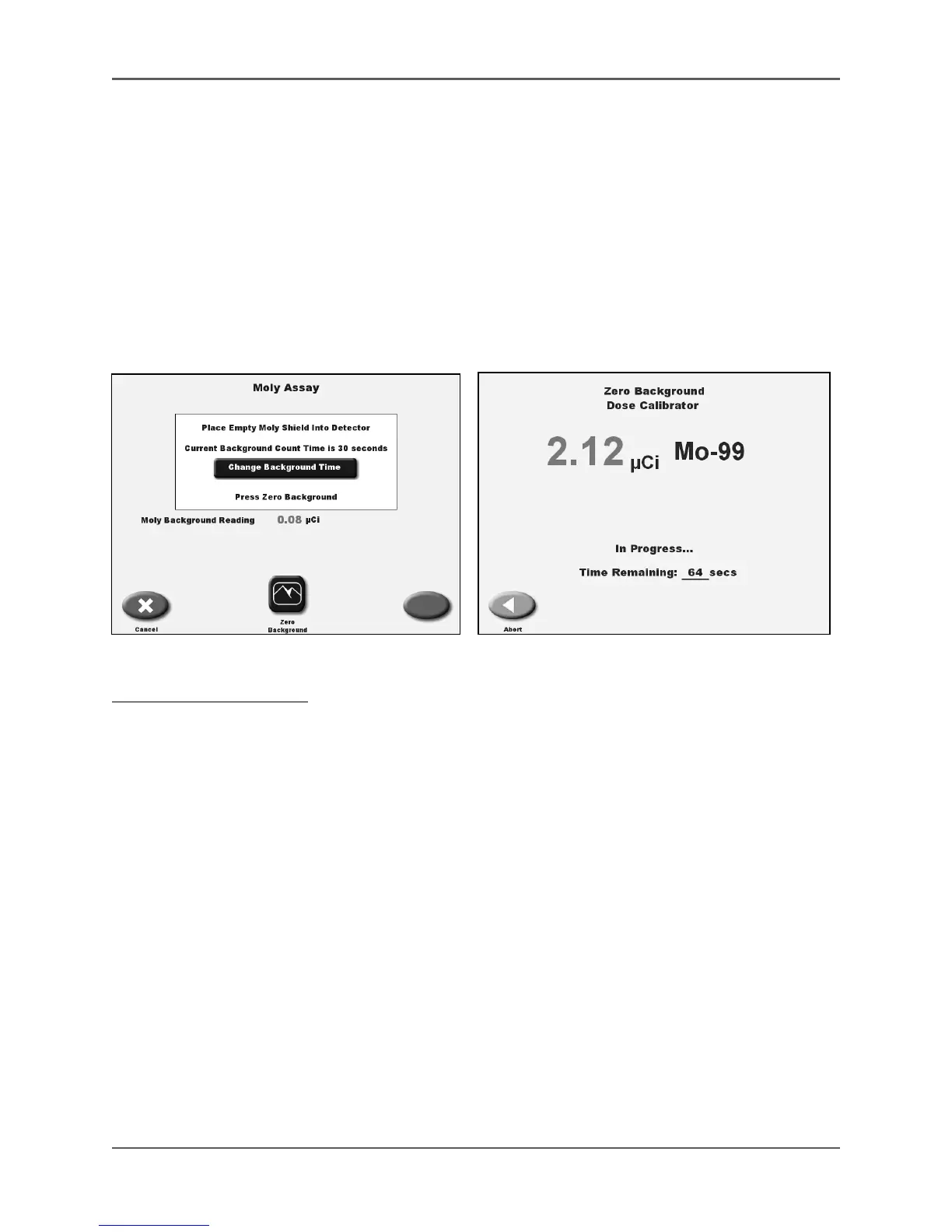 the time that you desire and select <Enter>. The Moly Assay Background Counting screen will