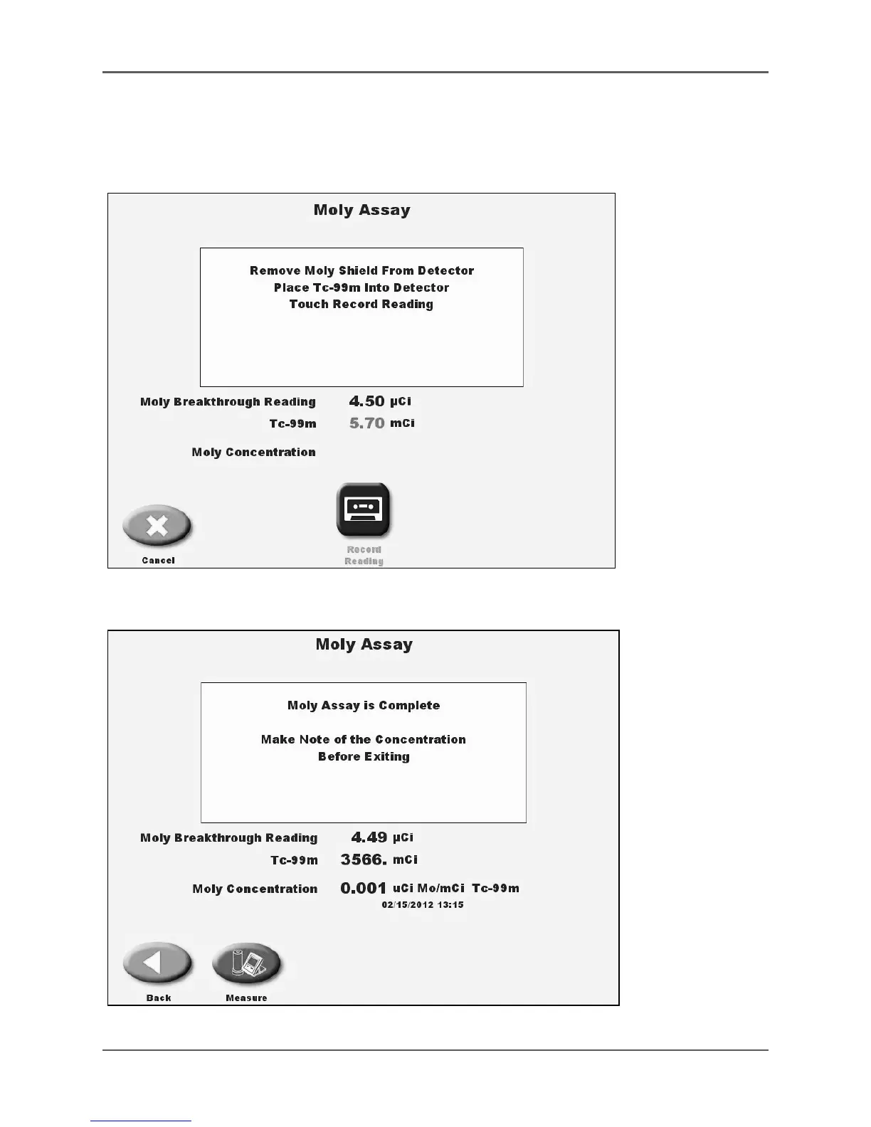 13. Touch <Back> to return to the Nuclear Pharmacy screen or <Measure> to advance to the