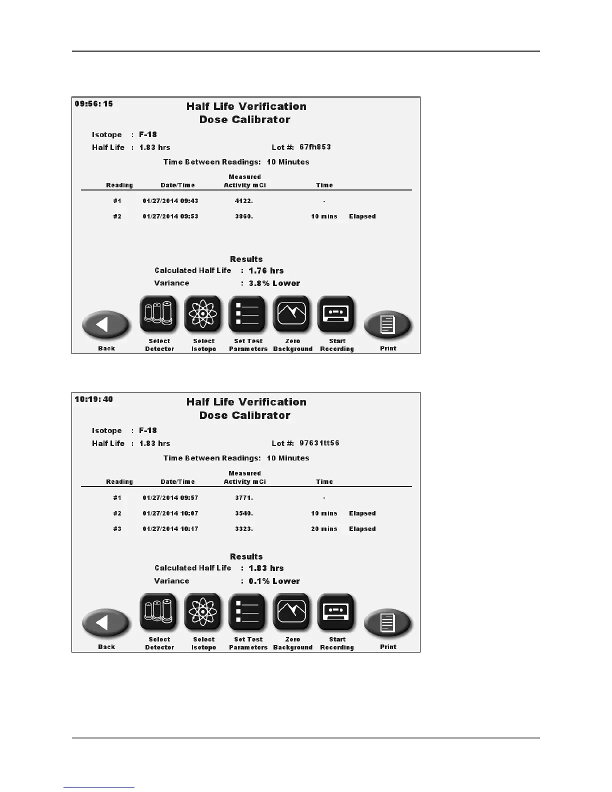 Figure 5.14. Two Reading Half Life Verification Results screen.