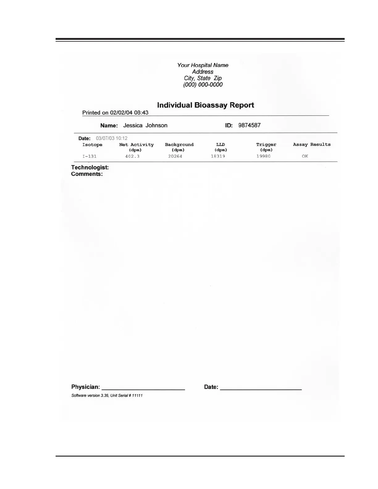 Figure 7-3. An Individual Bioassay Report.