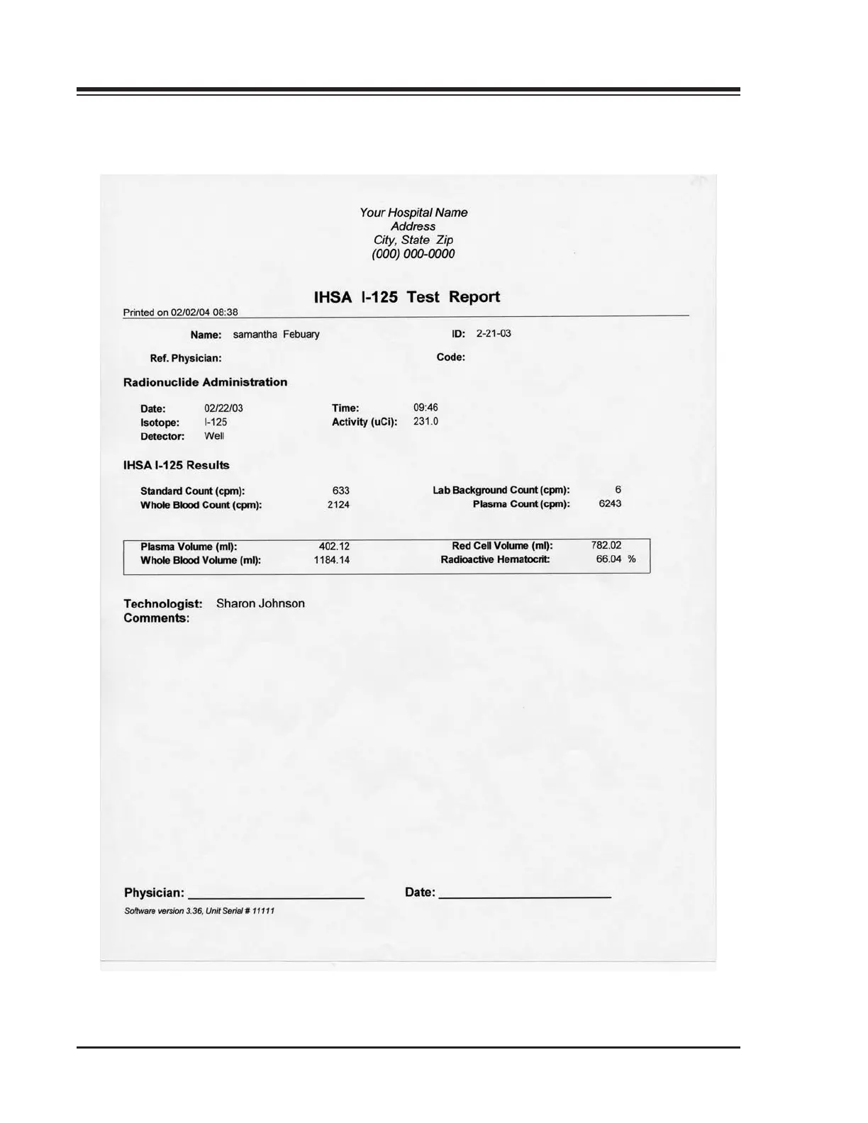 Figure 9-2. A Sample IHSA I-125 Test Report.