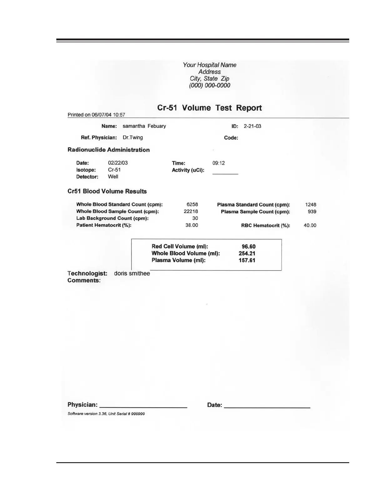 Figure 9-4. A Sample Cr-51 Volume Test Report.