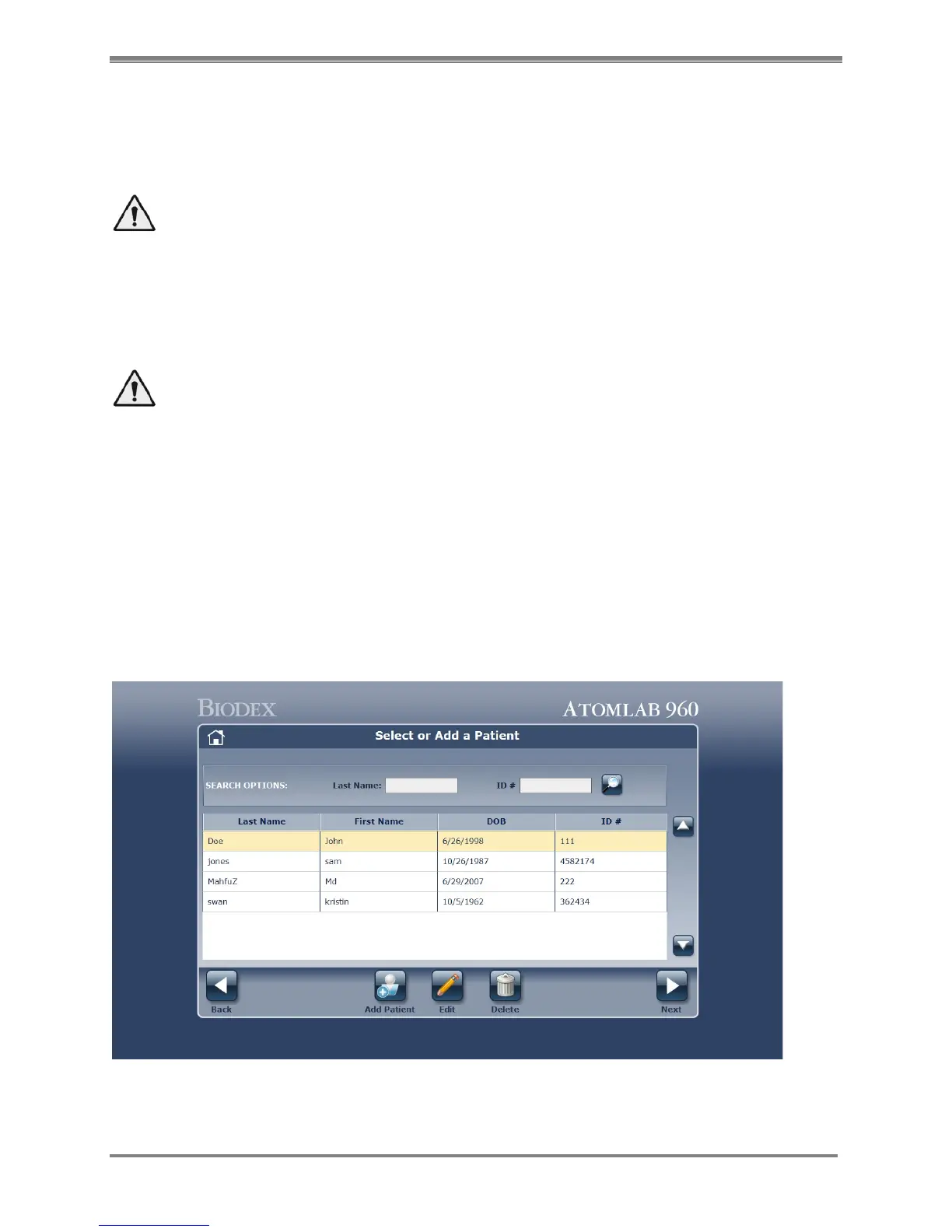 Figure 6.2. The Select or Add a Patient screen.