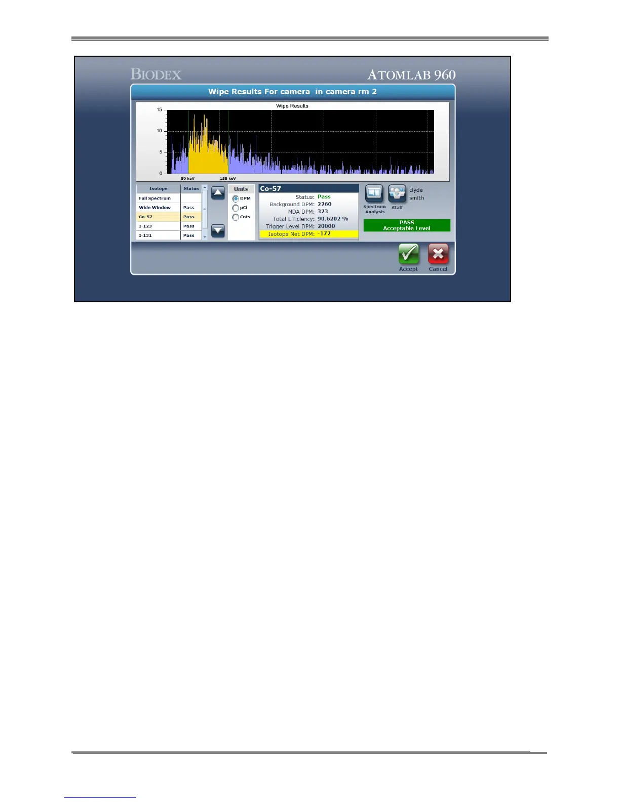 change the staff member, or select <Accept> to save this wipe result and return to the