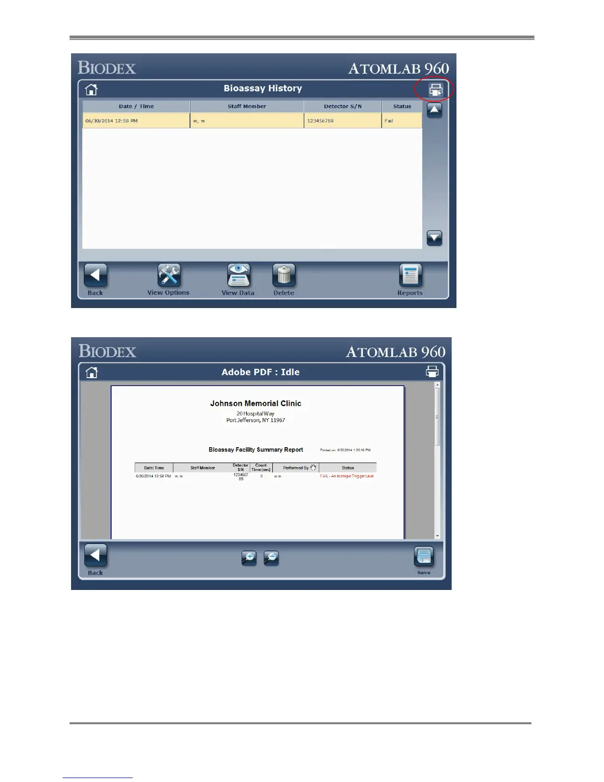 Figure 9.7. Navigation sequence for Bioassay Facility Summary Report screen (Testing>Bioassay>History>Print).