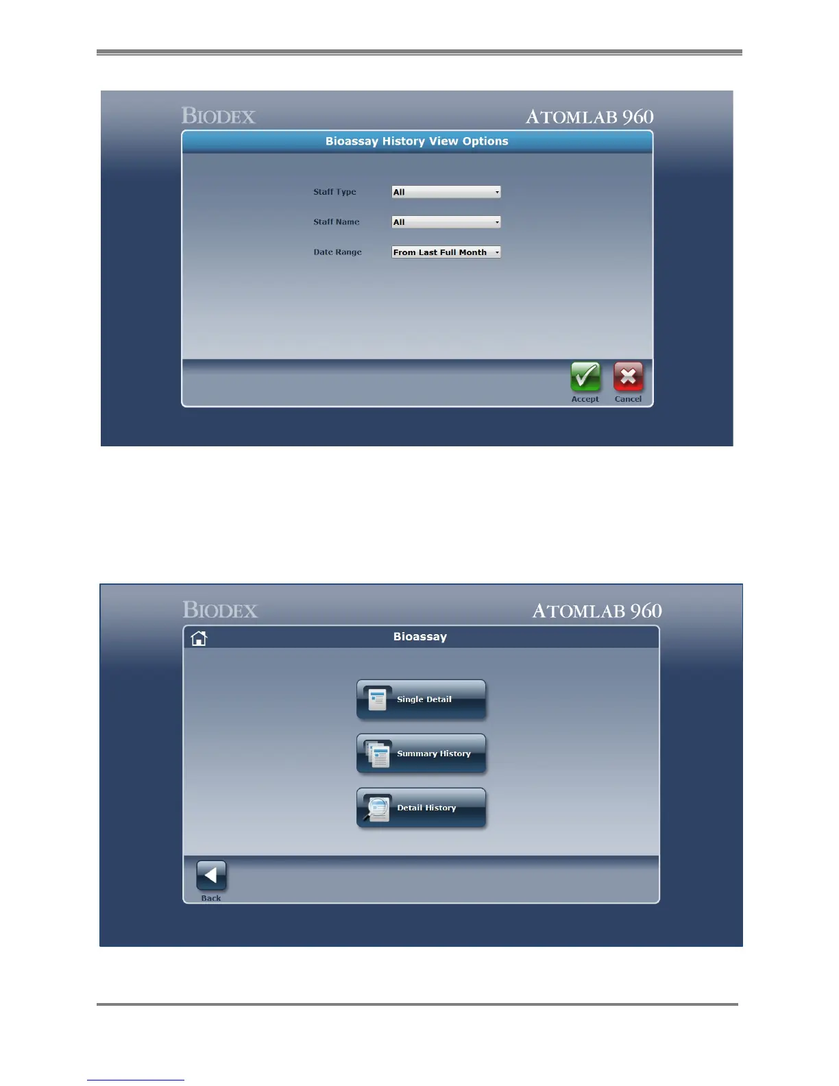 Figure 9.9. Bioassay History View Option screen.