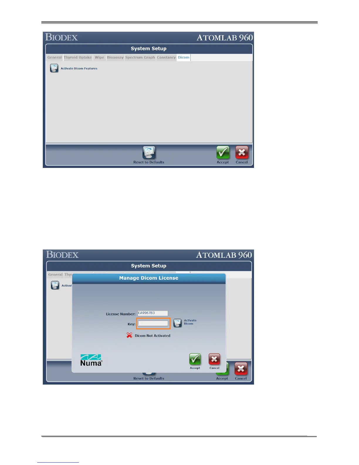 will also display “X DICOM Not Activated”.