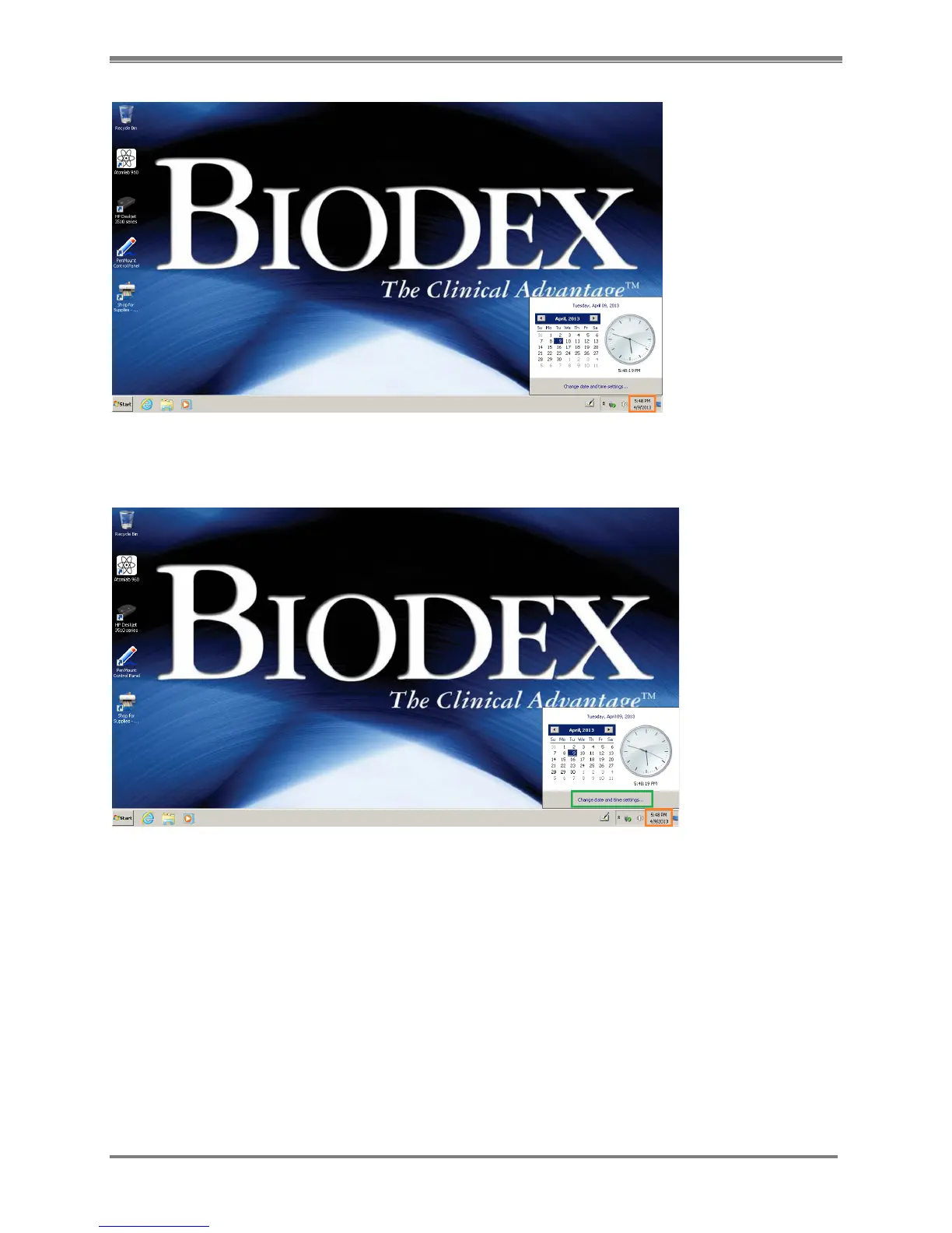 Figure 2.6. Desktop screen with <Change date and time settings> button highlighted.