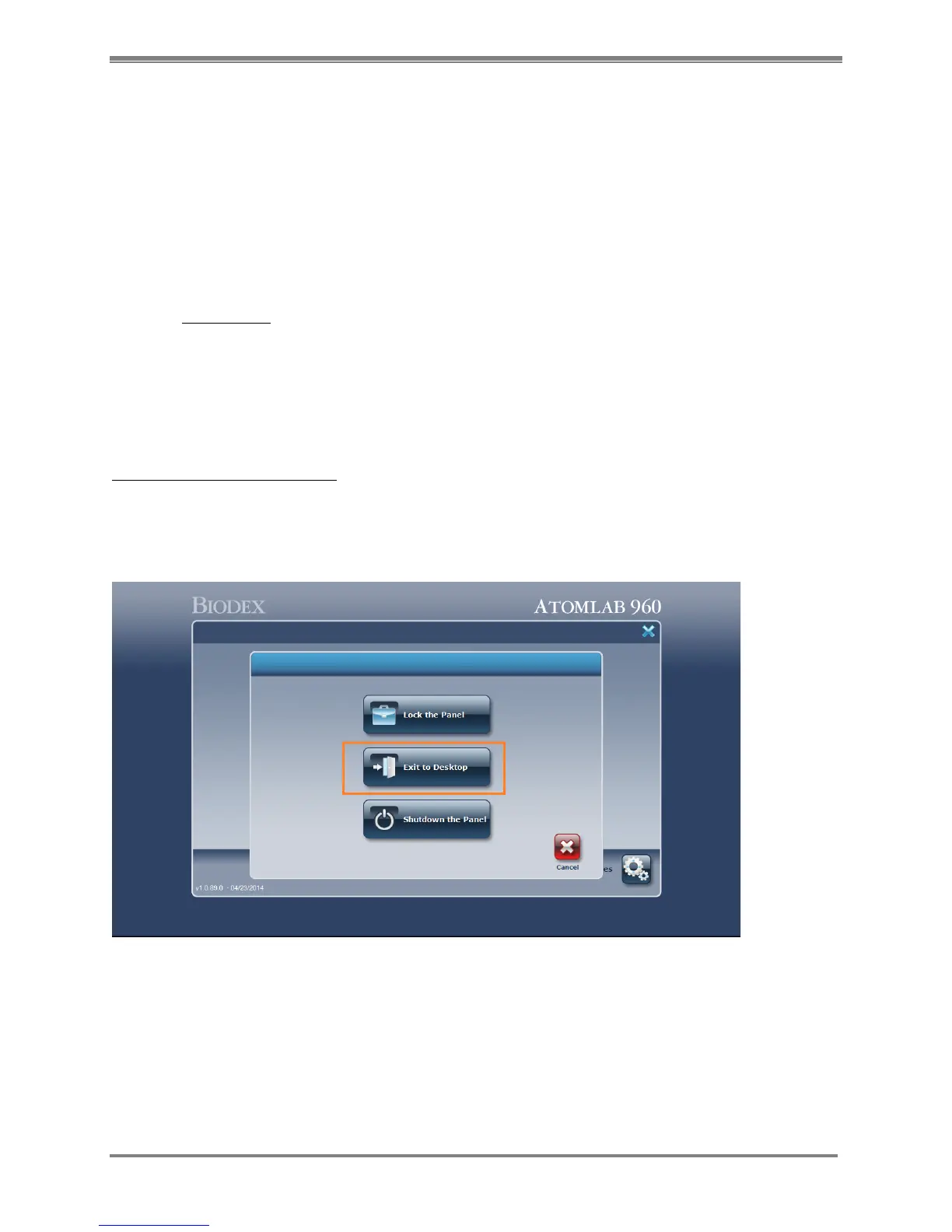 1. From the Main Menu screen of the Atomlab 960 software, select the <X> mark from the top