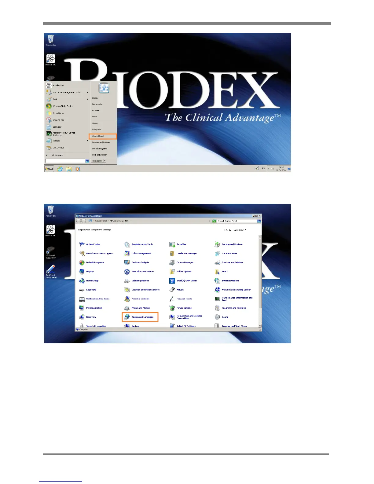 Figure 2.12 Panel operating system settings – Start button> Control Panel