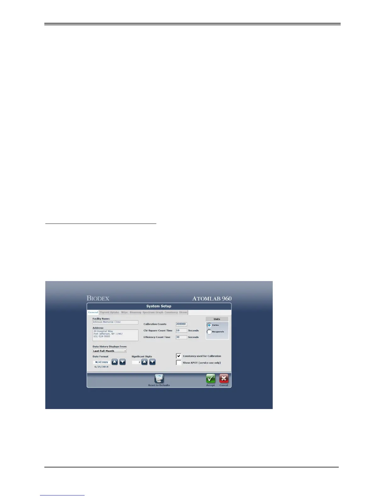 NOTE: Default values are provided for some settings on the System Setup screen. To return to