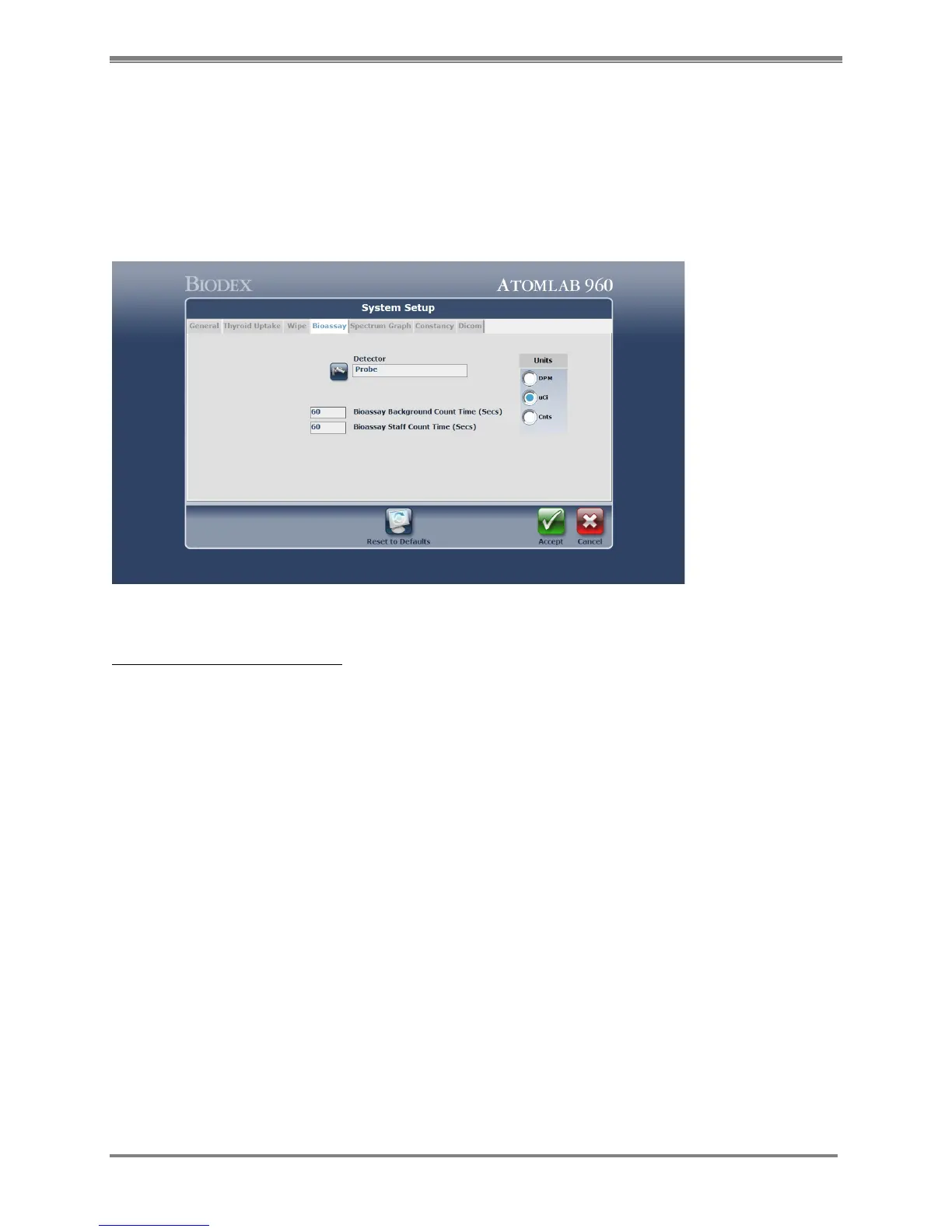 detector and set the counting time for both Bioassay Background Counting and Bioassay Staff