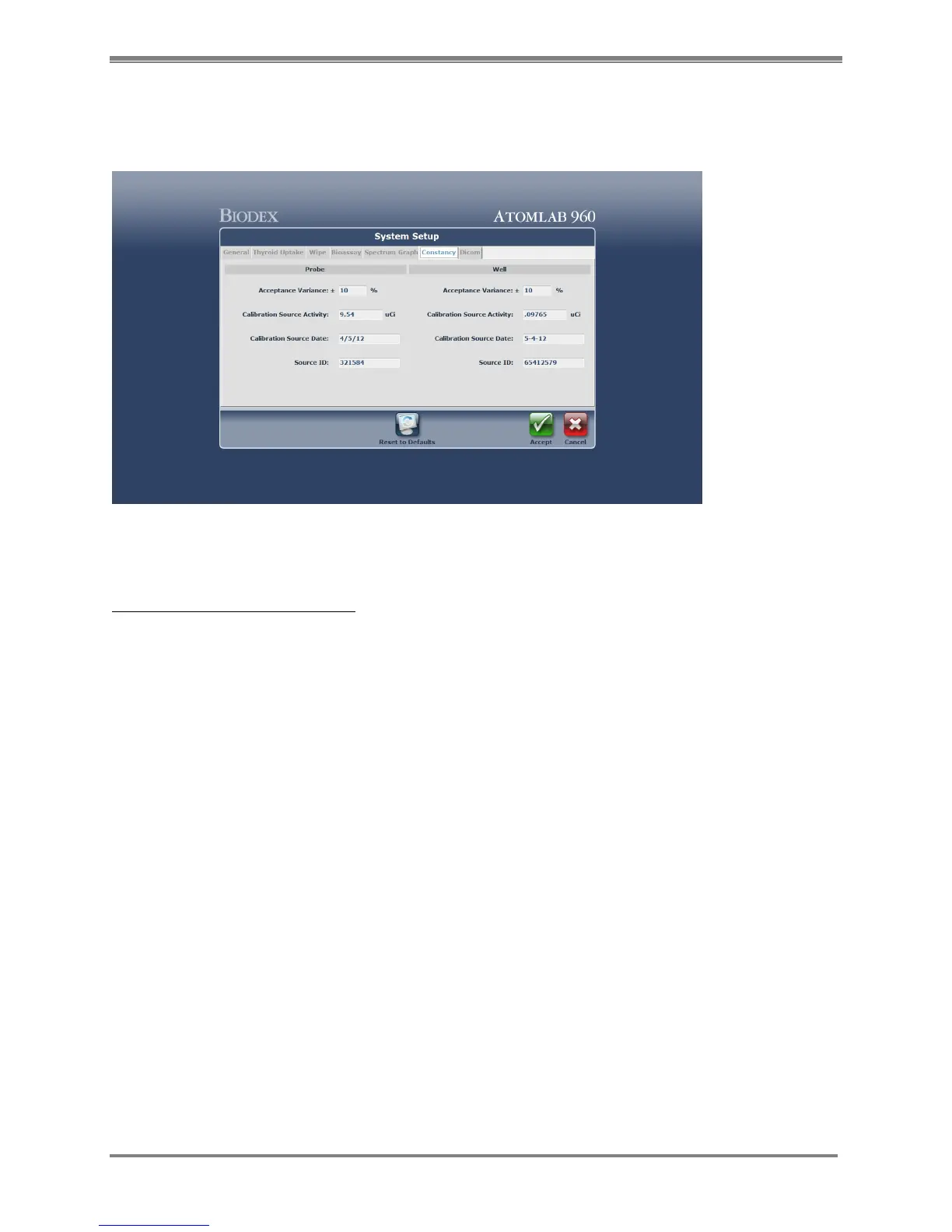 screen is now displayed. Here you can enter the Acceptance Variance, Calibration Source