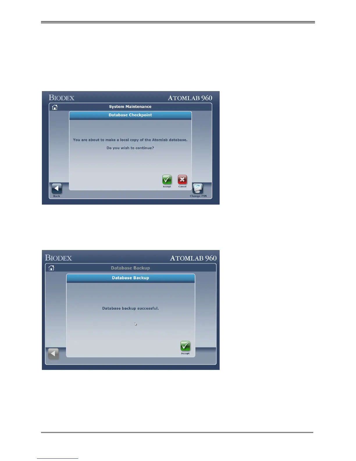 The Checkpoint Database function creates a backup database of current Atomlab 960 data on
